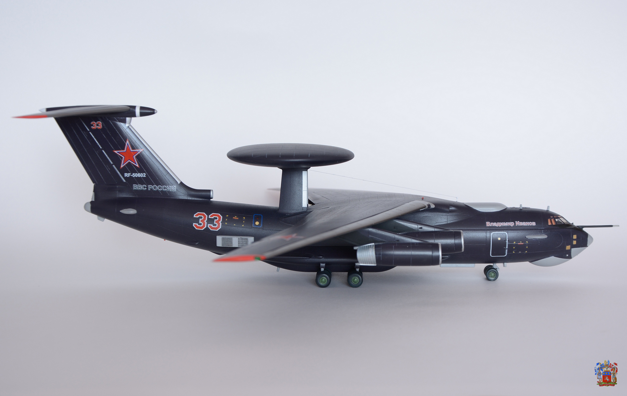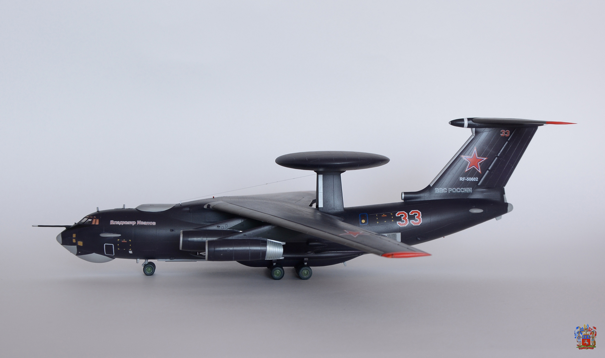 Друзья, приветствую. Представляю очередную модель - это А-50У. Модель от ЗВЕЗДЫ, модель отлично стыкуется, подводных камней нет. По самолету: так как, это А-50У, то пришлось обрезать нижние крылышки. Использовал травление от Микродизайна, вентиляторы в турбинах однозначно выигрывают, антенны на любителя. Добавил АНО в крыле, нарезал расшивку в локаторе, использовал медную самоклейку на остекленении, натянул антенну из мононити, поставил красные АНО, деколь заказывал у Алексея Бацких. Красил Ганзой RussianAircraftBlue 2 393. Металлики mig, лак полуматовый тамия. Приятного просмотра.