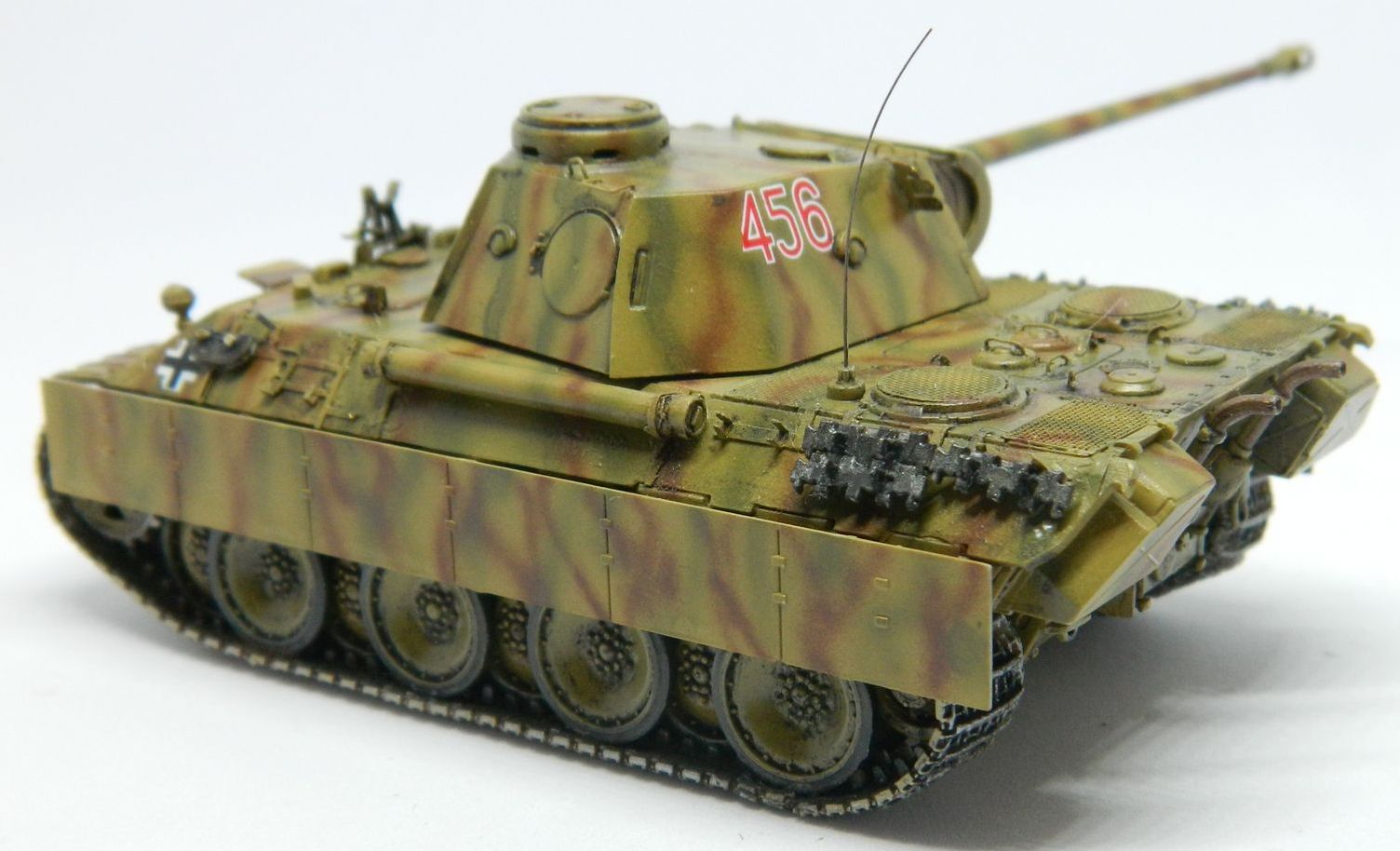 Представлена модель Пантера Д поздний вариант от Драгон,добавлены точеный ствол,травление на мто,проволочки на рымы и ручки,антена из кошачьего уса,обвес шанцевого инструмента делать не сподобился,запасные траки ЗиП.окраска акрилами тамии по базе от Пасифик 88, смывки АК ограниченно ,для рельефа.