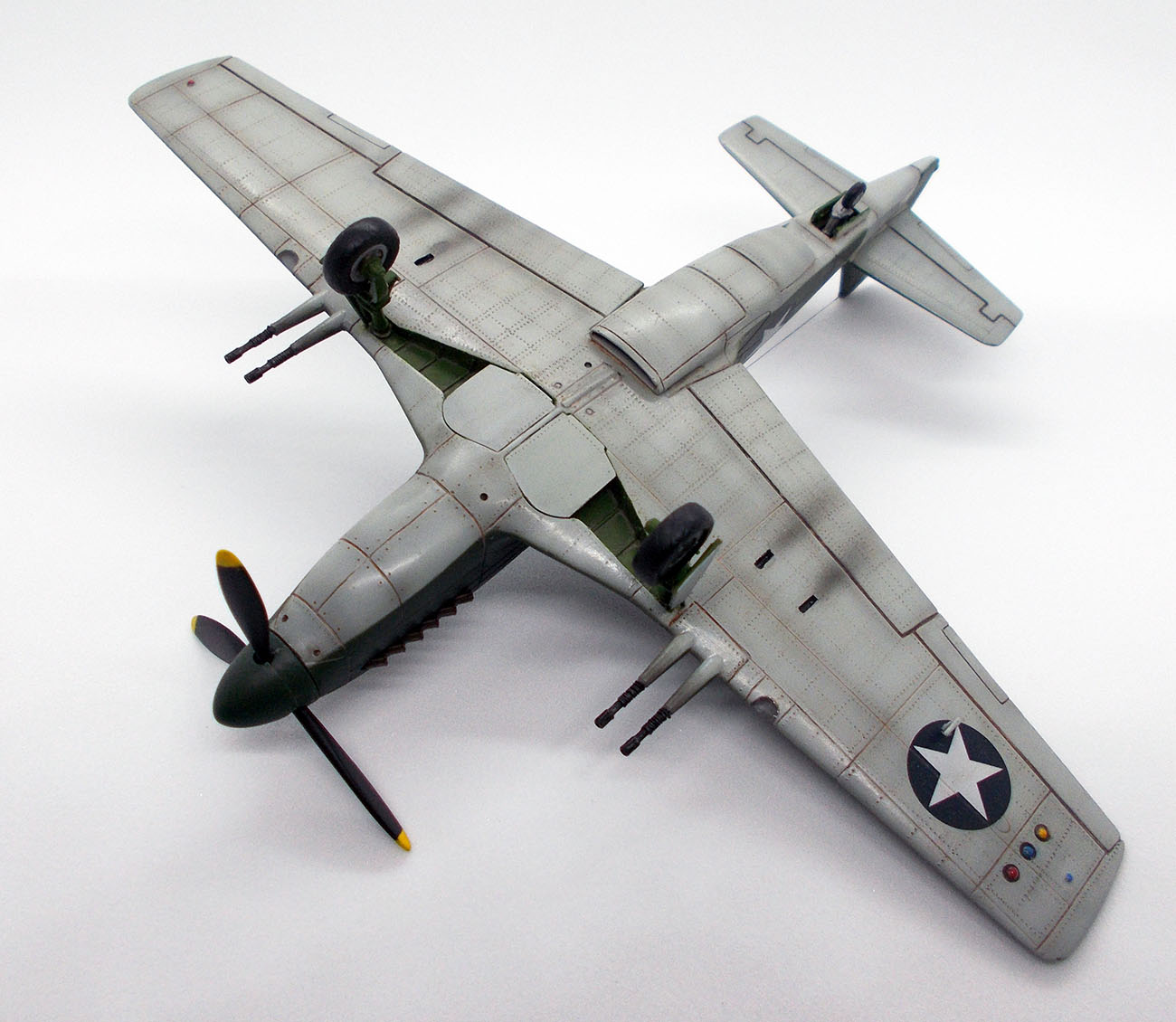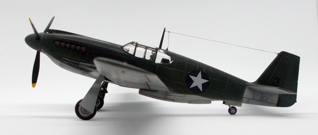 Красивый Мустанг. Цвет - он и вправду более на японский похож. Впрочем, американский "олив драб" имел весьма широкую гамму. Крыло, насколько я знаю, полагалось шпаклевать - ламинарное как-никак.