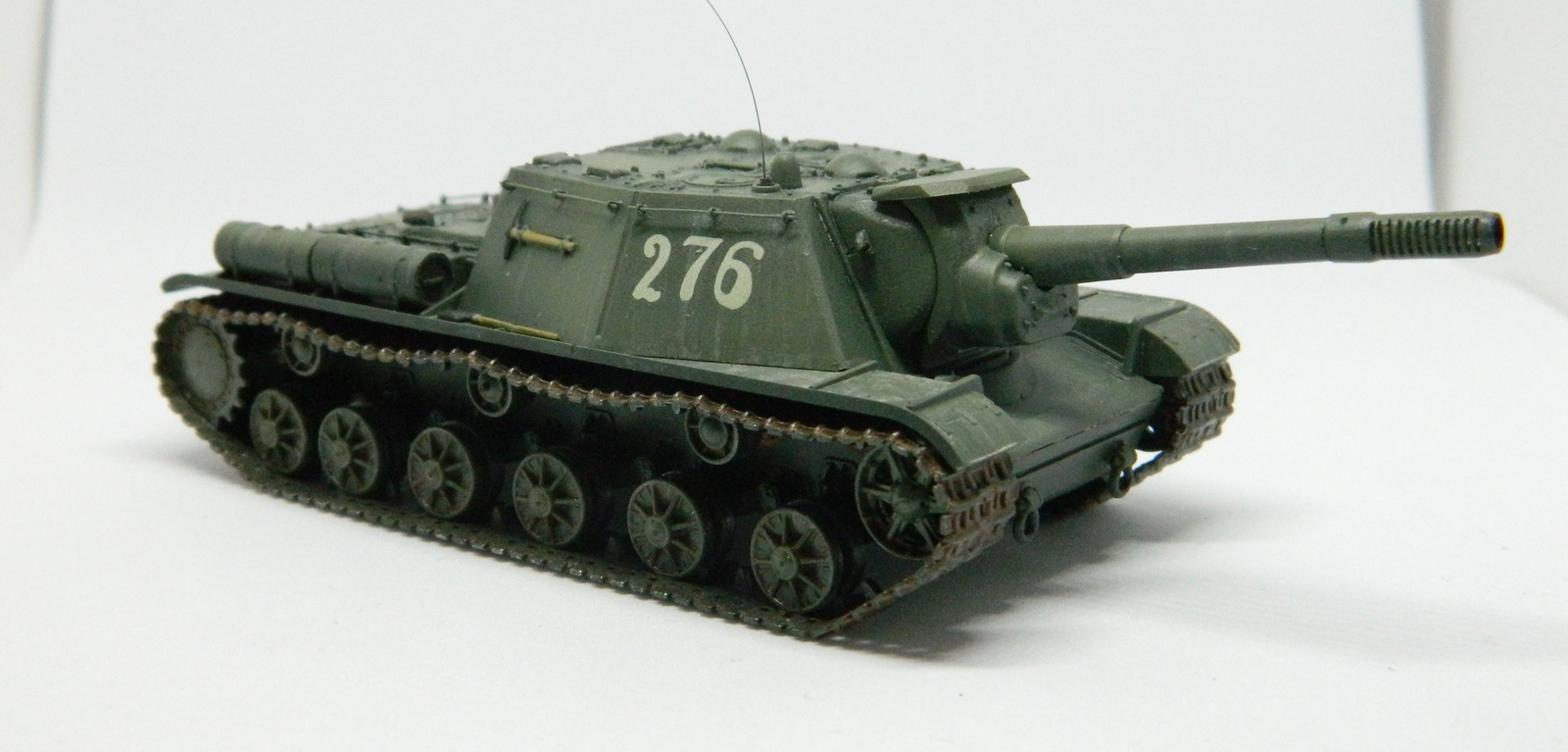 вашему вниманию модель быстросборки су152 от трумпетер, заменил ствол и дульник на точеные от Димок73,сеточки на мто,поручни проволка и травленые опоры от набора т34-76,покраска акрил пасифик 88,намного смывок АК.
