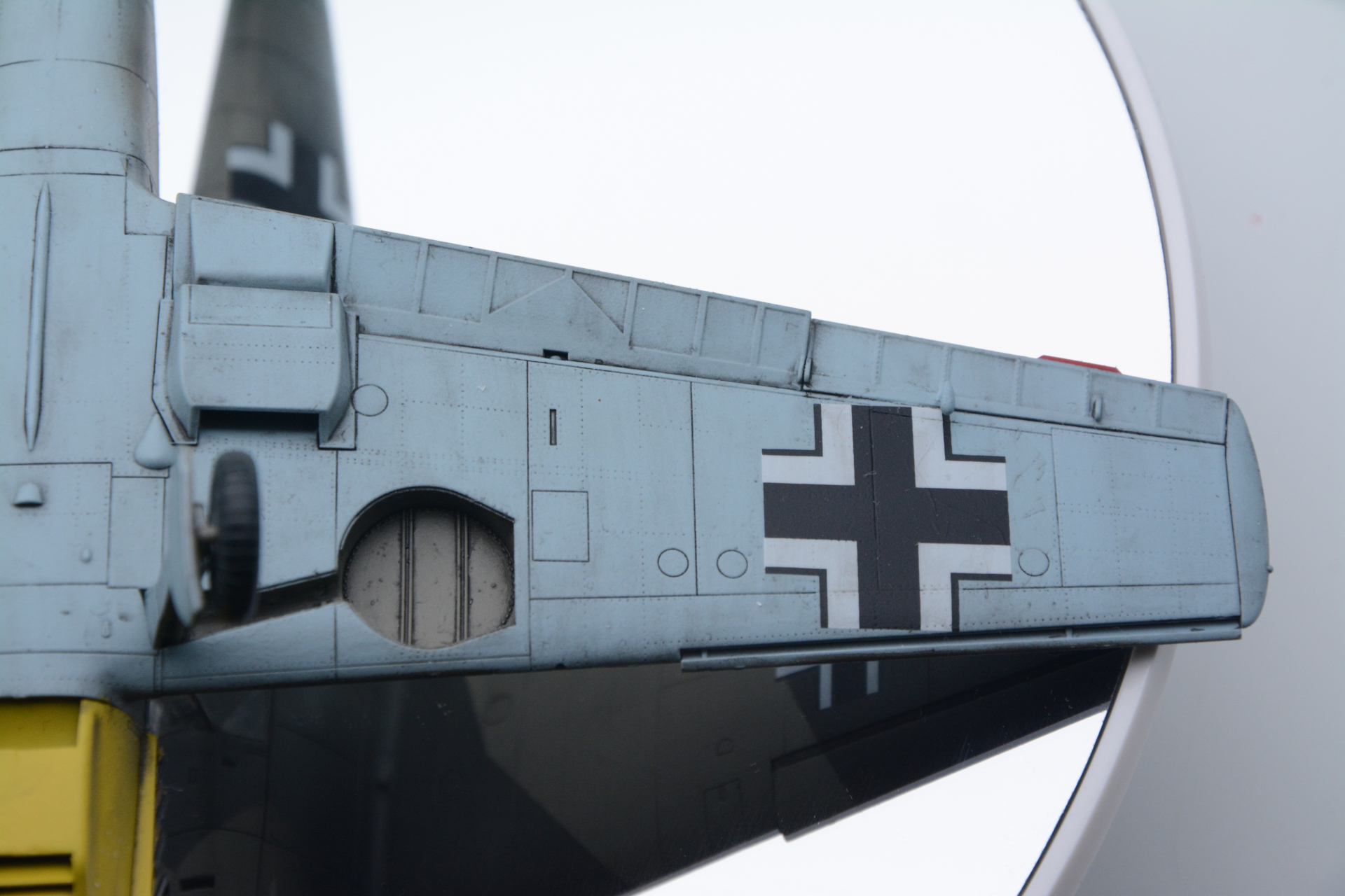 Да, это особенность абсолютно всех 109-х от Эдуарда, предкрылки даны в выпущенном положении, чтобы их прижать, надо укорачивать шпеньки с внутренней стороны предкрылков