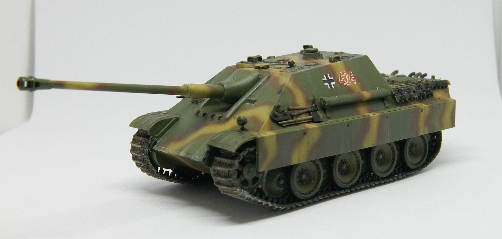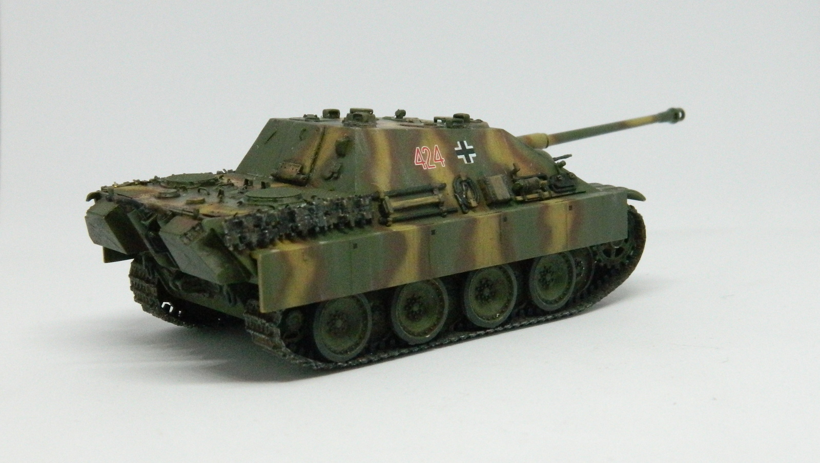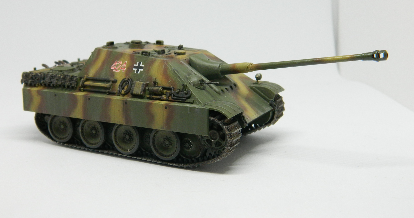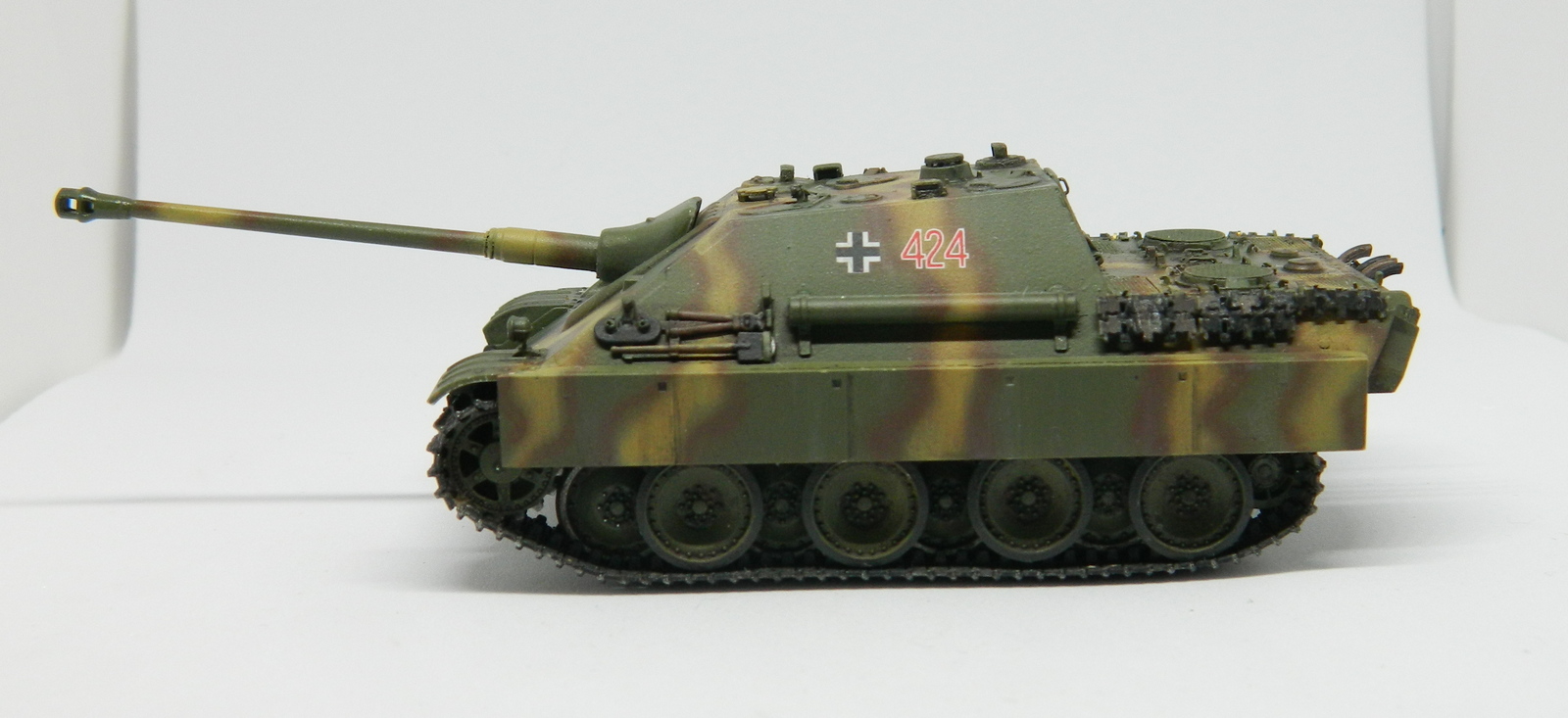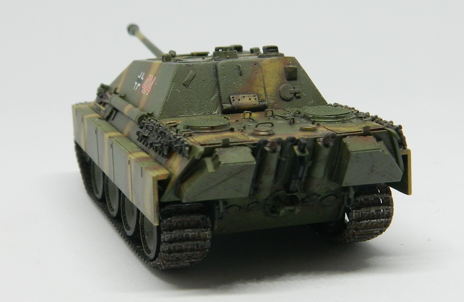Допы, допы, допы... Это ведь не отменяет необходимости доведения до ума стыка ВЛД с НЛД. Корма рубки покоцана после удаления штатного кормового люка, не мешало б шпаклёвки добавить. На бронировках выхлопа стыки прессформ, хотя их вообще менять по хорошему нужно. Ну и остальные родовые травмы от звезды на месте. Зато хоть шанец есть ))))) Камуфляж хорош, здесь действительно чувствуется рука мастера.