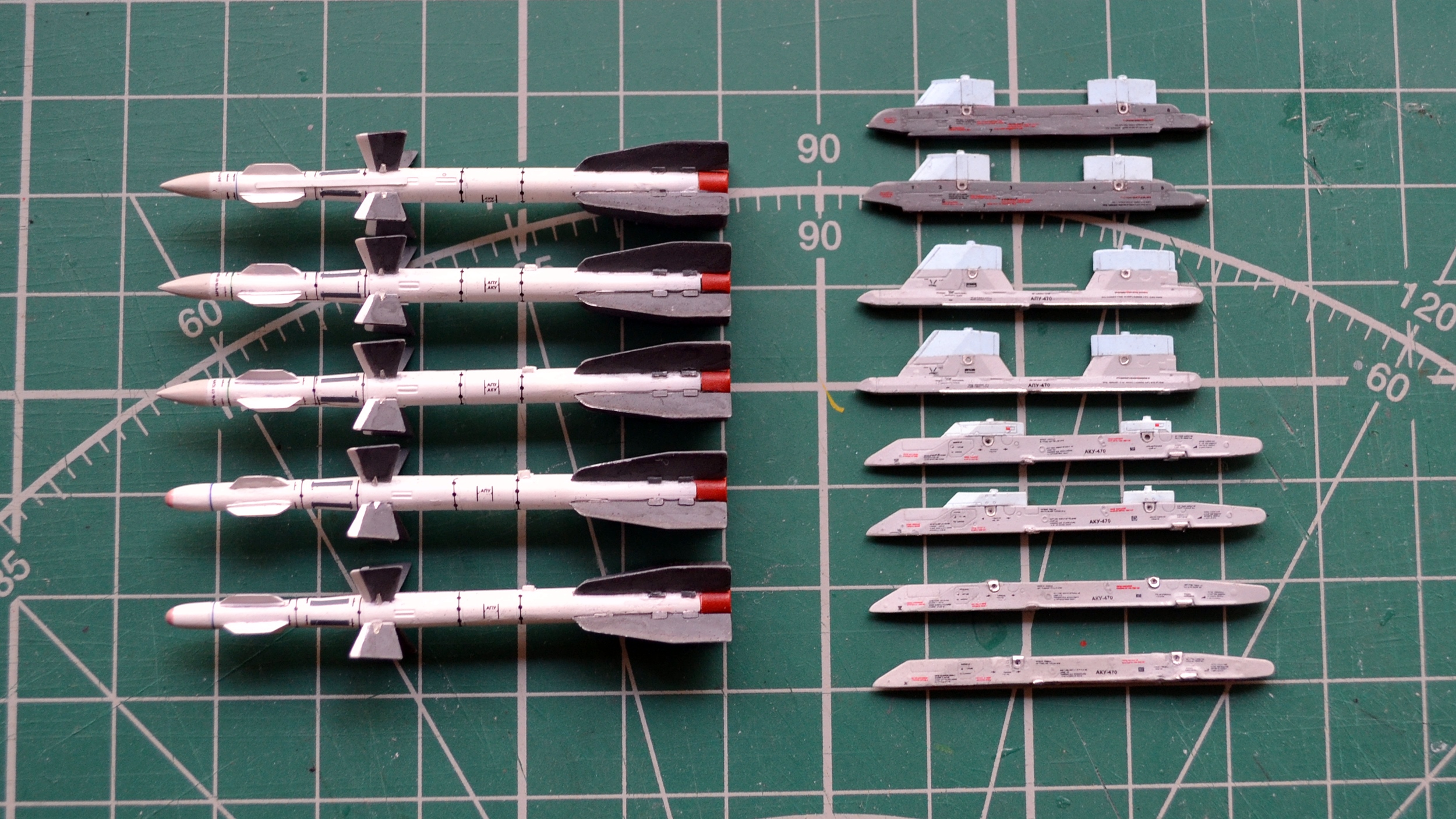 Спасибо, Вагиф! Когда-нибудь, надеюсь, и сопла побеДЮ!)) Ракеты вешал, как на фото. Разве что цветные кольца-маркеры мог неправильно использовать (сделал зеленые на "Р"-ках и синие на "Т"-ках), т.к. не нашел в каких случая какие наносятся - были еще желтые и красные в наборах, но верить инструкциям...