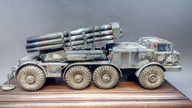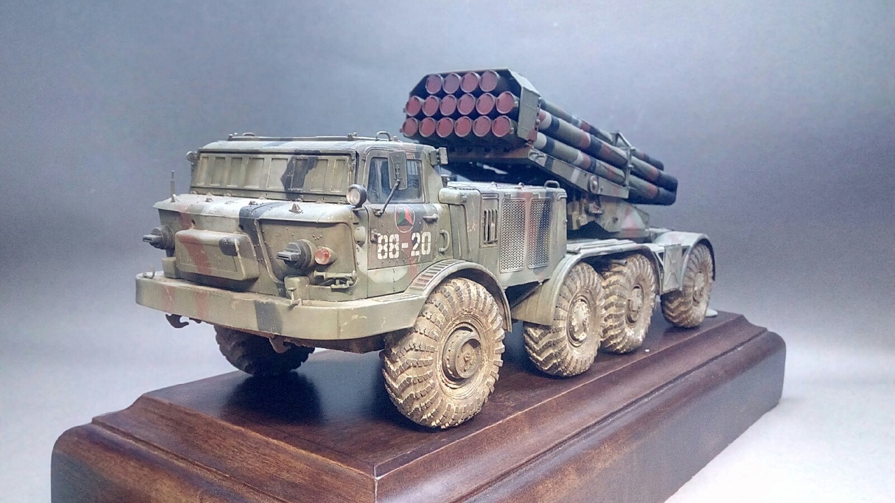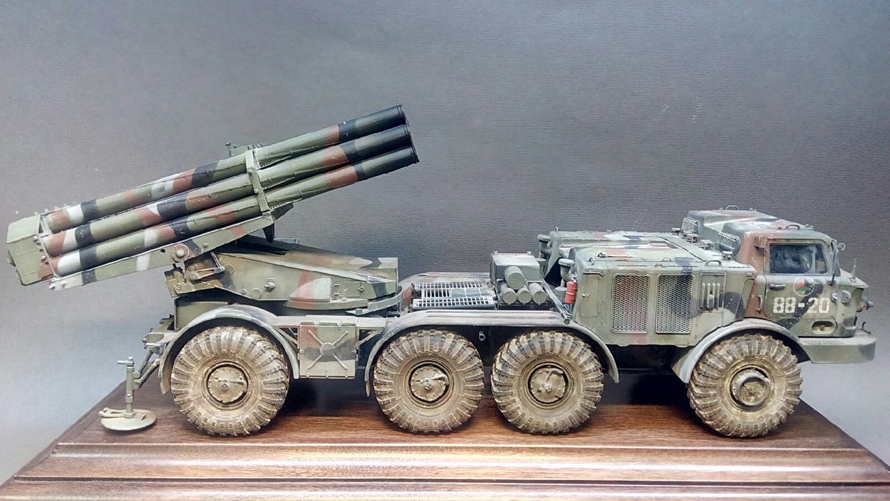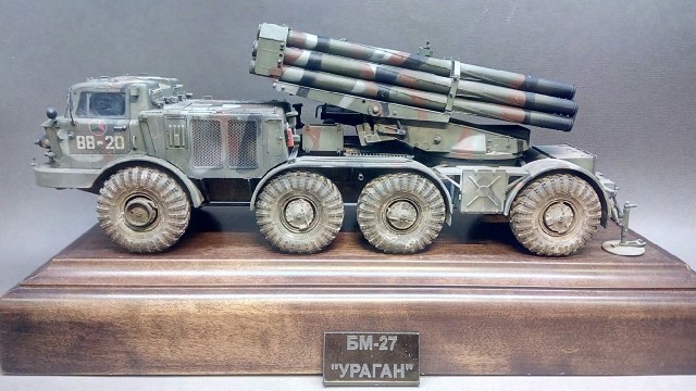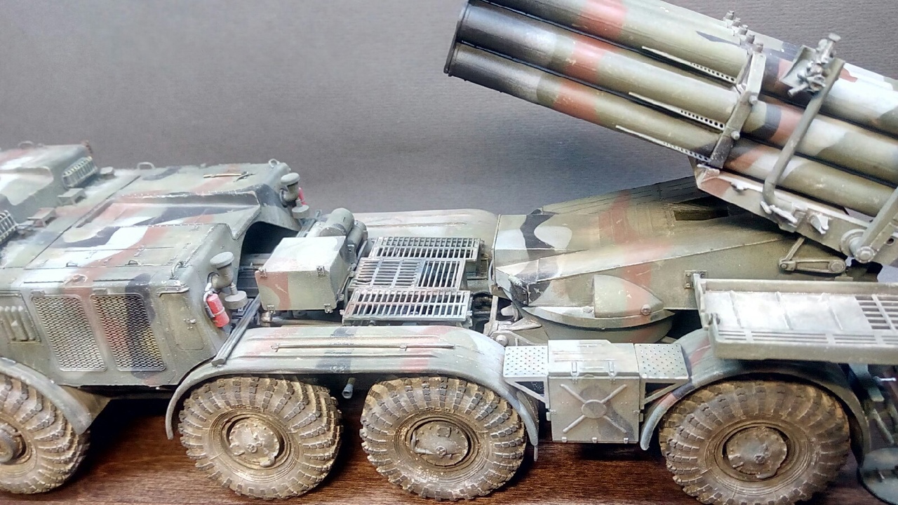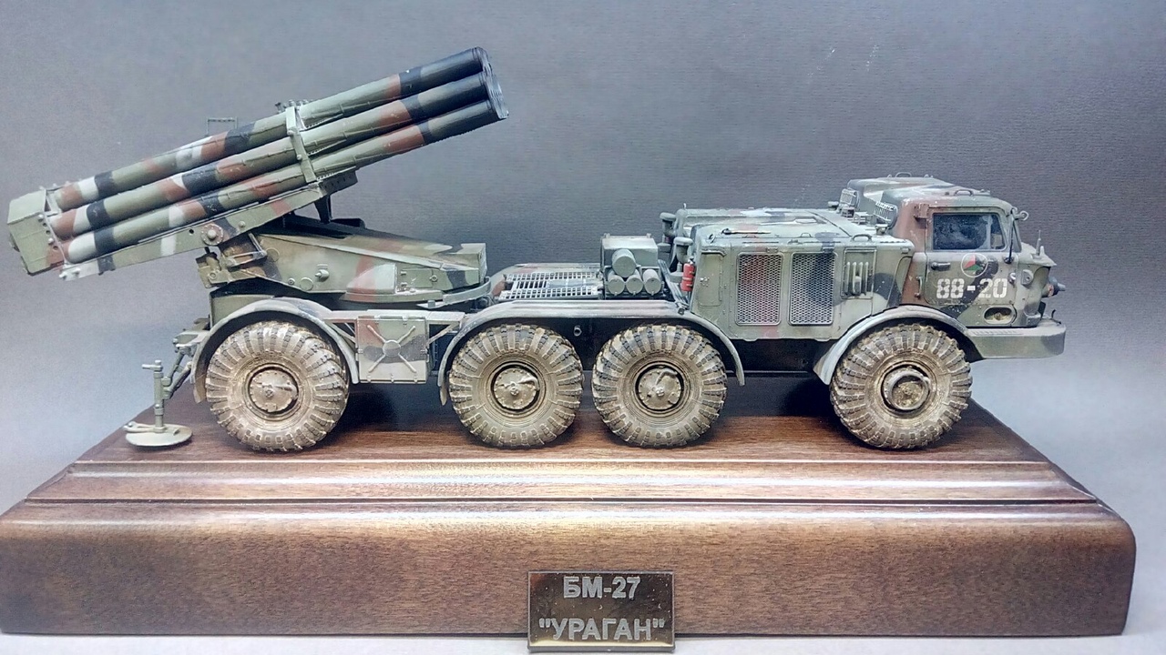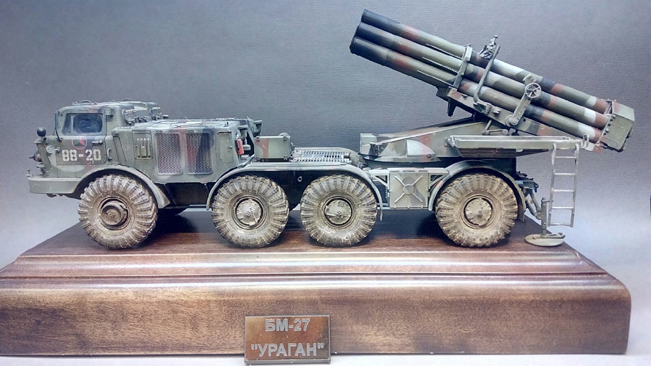 Доброго времени! Завершил модель Урагана от Трубачей. модель собралась довольно быстро и без проблем. Из дополнений замены были только колеса от miniarma в остальном из коробочная сборка. Камо выбрал четырехцветный на тему Афганистана ,как было указано в одном из вариантов схем. Двигатели прорабатывать особо не стал так как верхнюю часть корпуса МТО решил сделать не съемной. Красил МиГом
