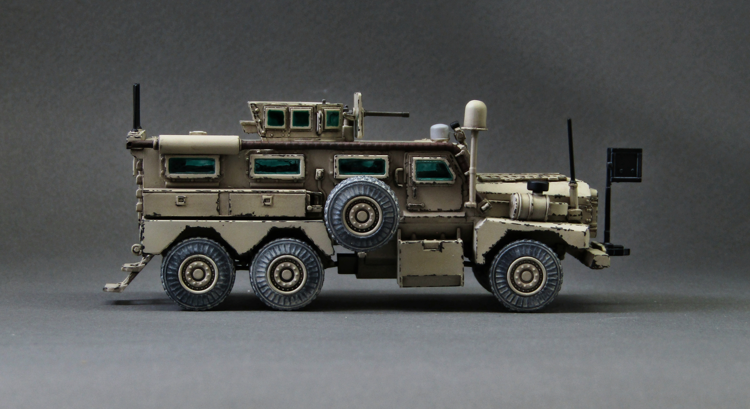 Представляю такую вот необычную модель в 72-м масштабе, которая скорее выполнена судя по названию как конструктор-пазл, отсюда и детализация низкая (пустые колёса с внутренней стороны, толстые антенны, отсутствие окон на бронировании башенки стрелка и т.д. Для более-менее достойного результата было принято решение подтянуть данную модель путём лёгкого везеринга в виде сколов краски на броне и тонировки бронестёкол в зелёный цвет. Получилось или нет судить Вам, приятного просмотра...