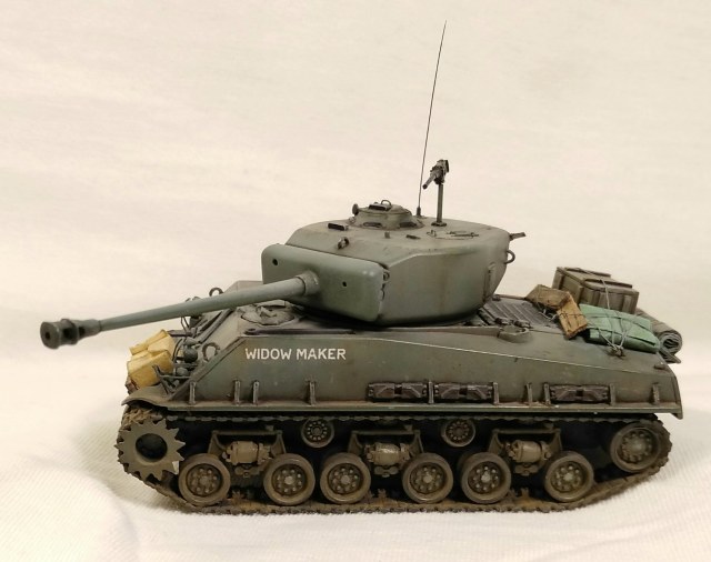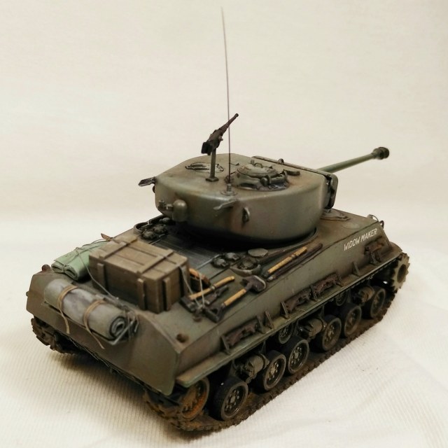 Представляю вашему вниманию модель знаменитого американского танка шерман поздних выпусков. Модель потребовала некоторой подонки и шпаклевки, но, в целом, оставила приятные впечатления. Мелочевку по максимуму постарался заменить на самодельную. Обвес также изготовлен самостоятельно.
