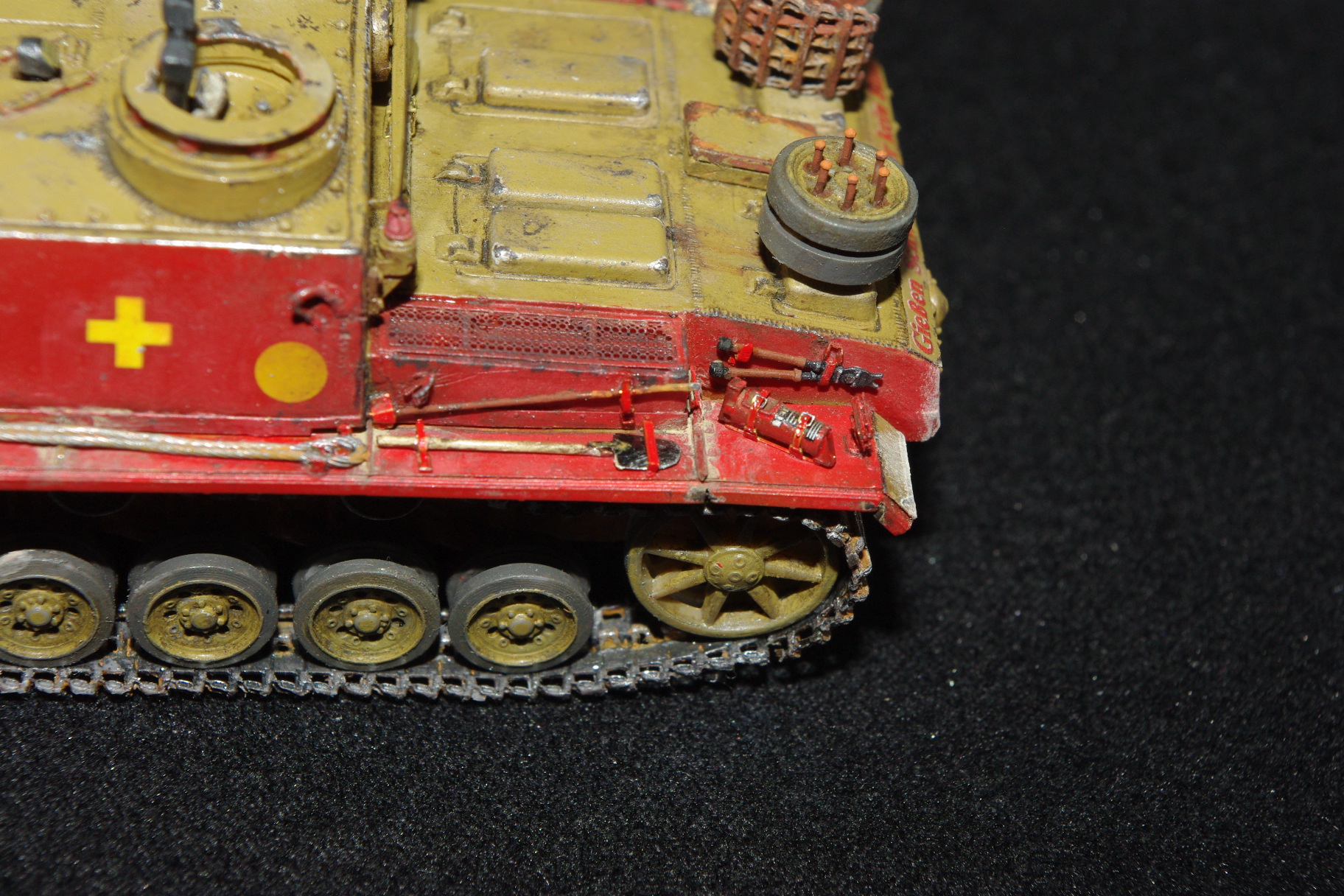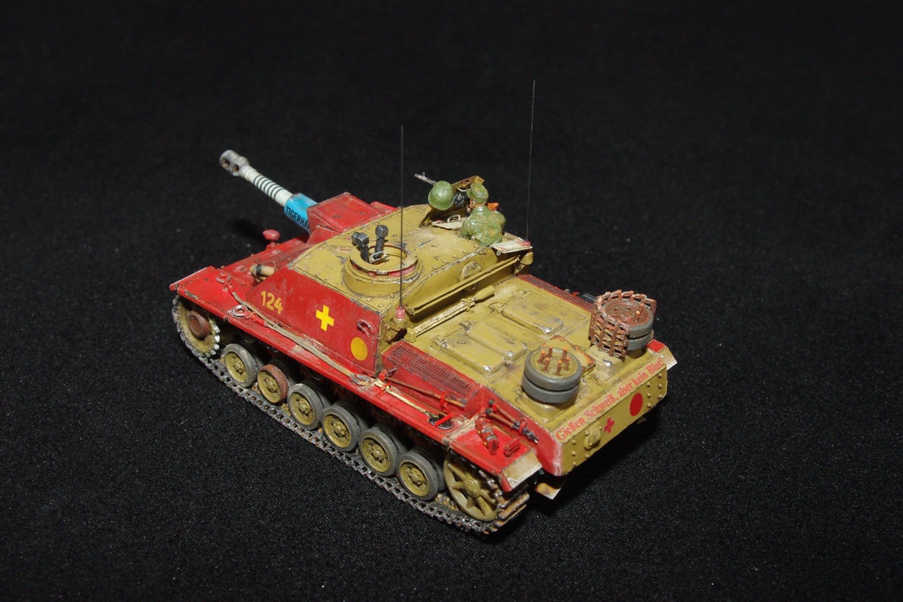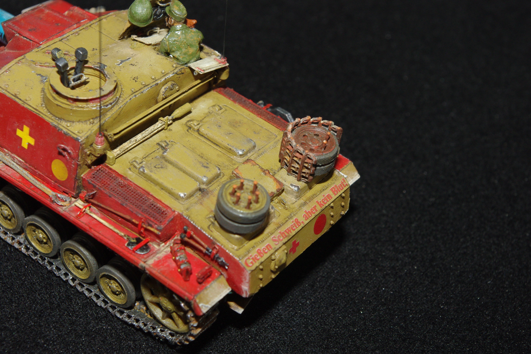 Добавил ствол, пулемёт, триплексы, тросики, перископы, выхлопы, недостающие клёпки и фрица.