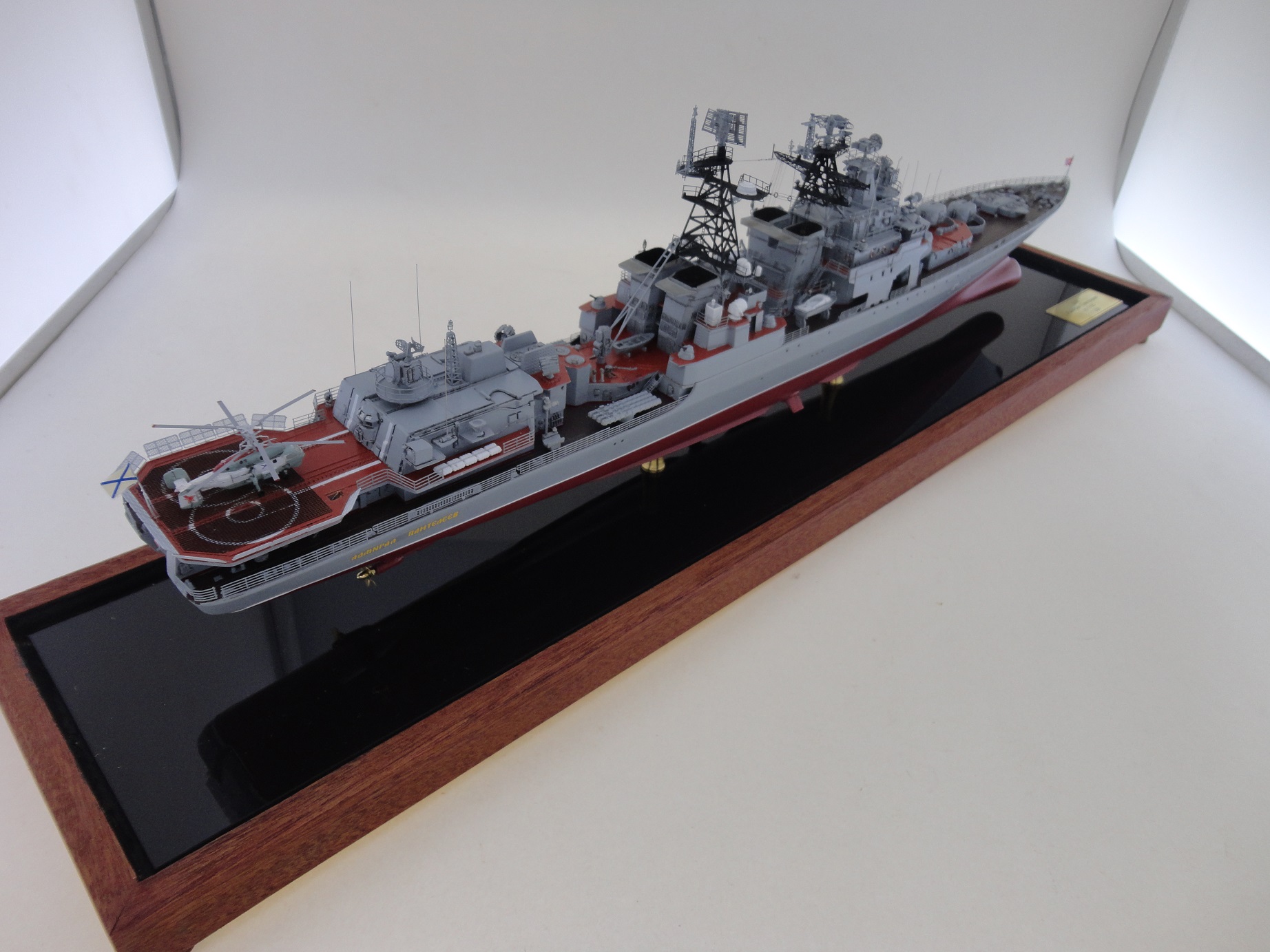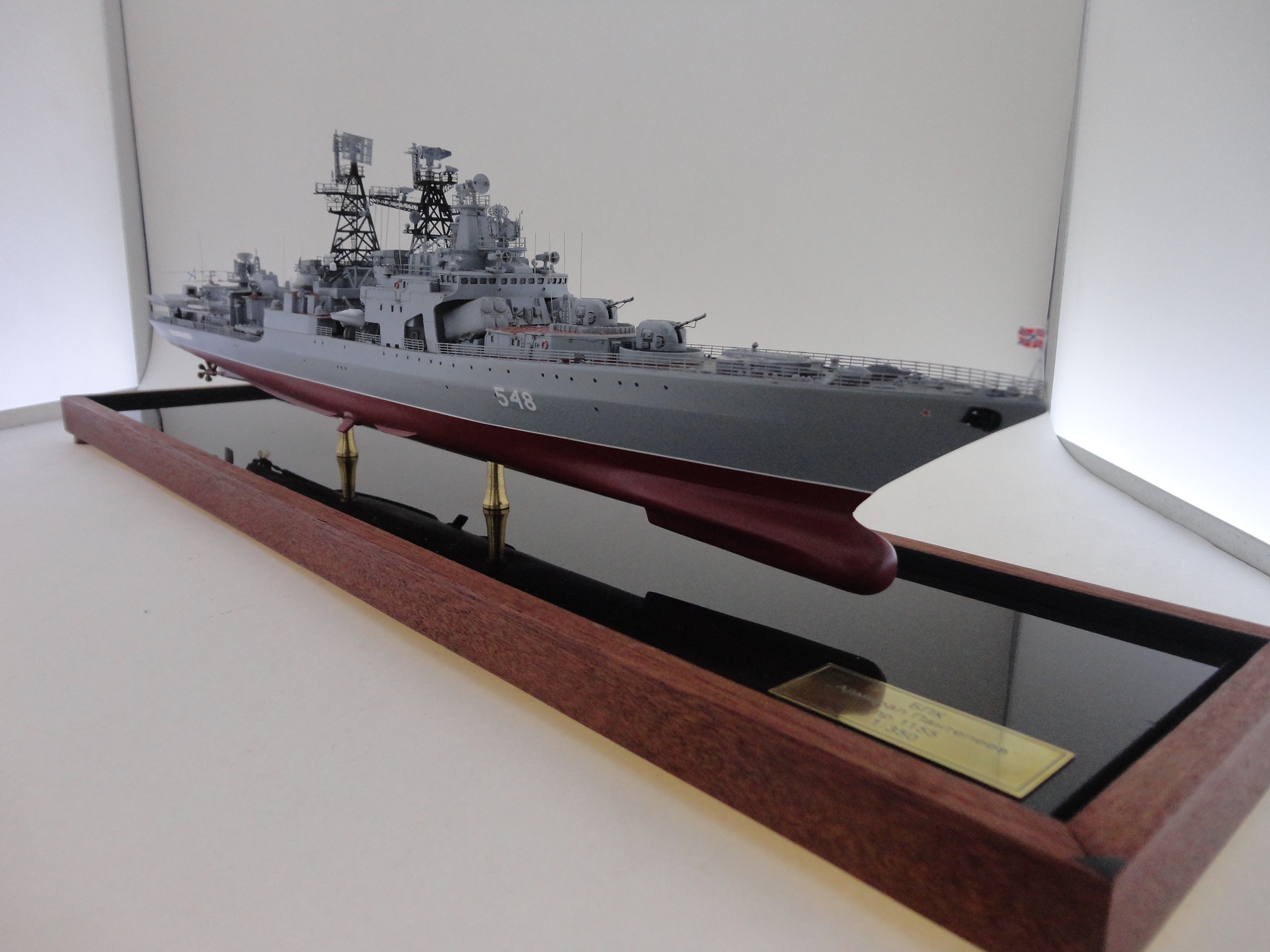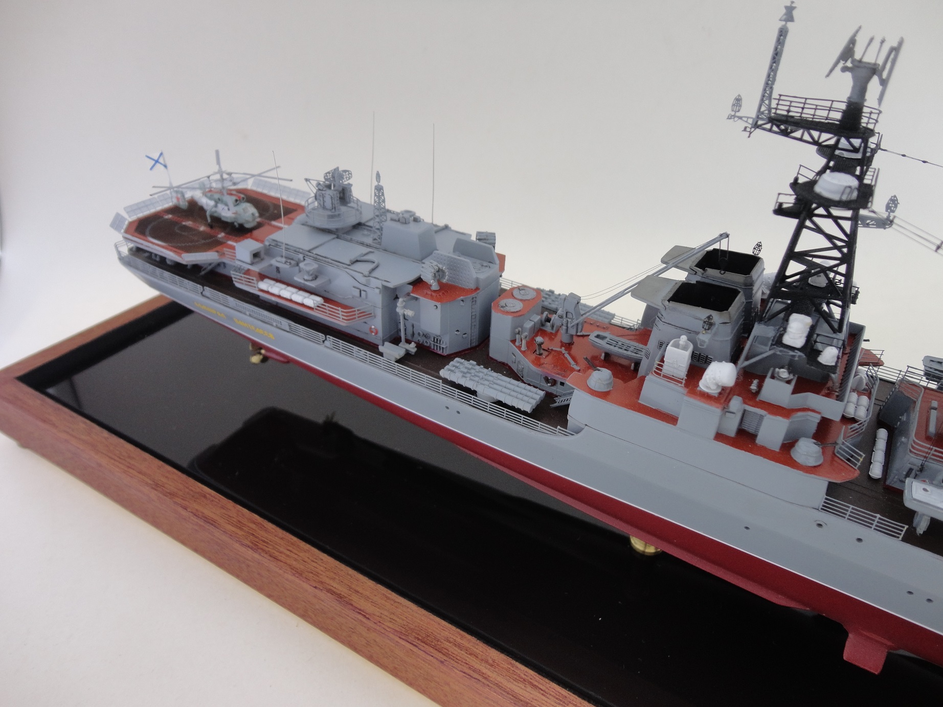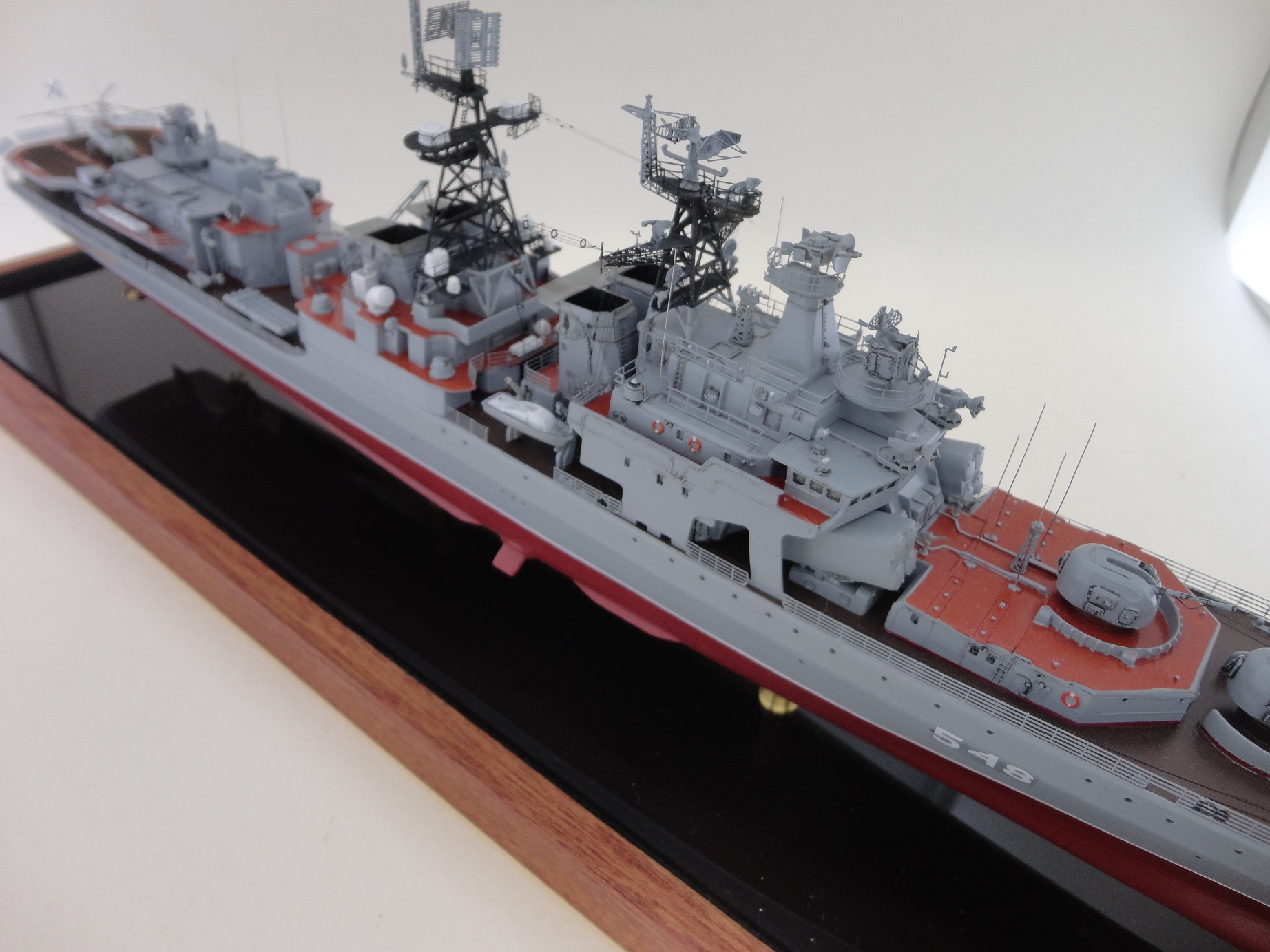 Всем привет! Очередной "горячий пирожок" из линейки "заказников"...На истории останавливаться не буду, незачем. Корабль несет службу на ТОФ-е, с базированием на Владивосток. Командир корабля-капитан 2 ранга Тихомиров.Д. Бортовой номер 548. По модели: Окраска "Ганзе", смывка, тавление "Мкродизйн". Всё как обычно...Всем приятного просмотра и мирного неба без вирусов и прочих неурядиц.