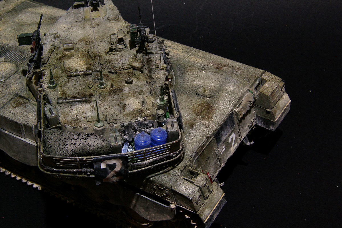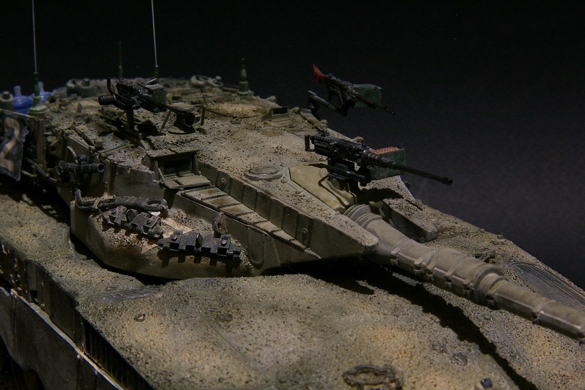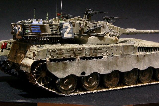 Понравилась подача модели (у меня с фото именно моделей не очень получается) Сама модель хороша! В будущих планах моего личного модельного хомяка тоже заполучить и собрать такую же (нравятся меркавы) , но без антислипа. Единицы далеко не все с ним шли, если верить источникам из инета. В части антислипа от аммо миг- он для меркав не подходит от слова "совсем". Попробуйте текстурную пасту тамии № 87110(если в планах подобные танки). Антислип от Аммо миг подходит для ЛеопардОВ, АбрамсОВ, Т-90МС по моим практическим представлениям