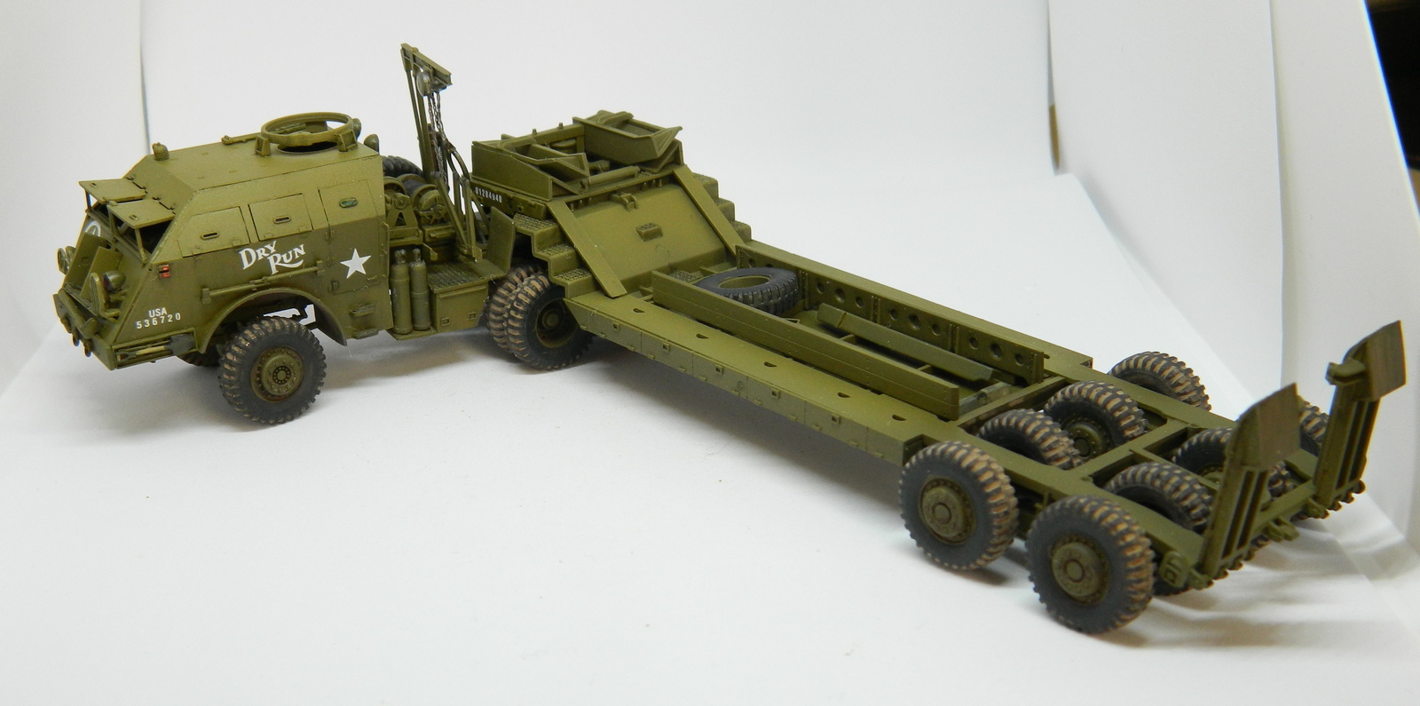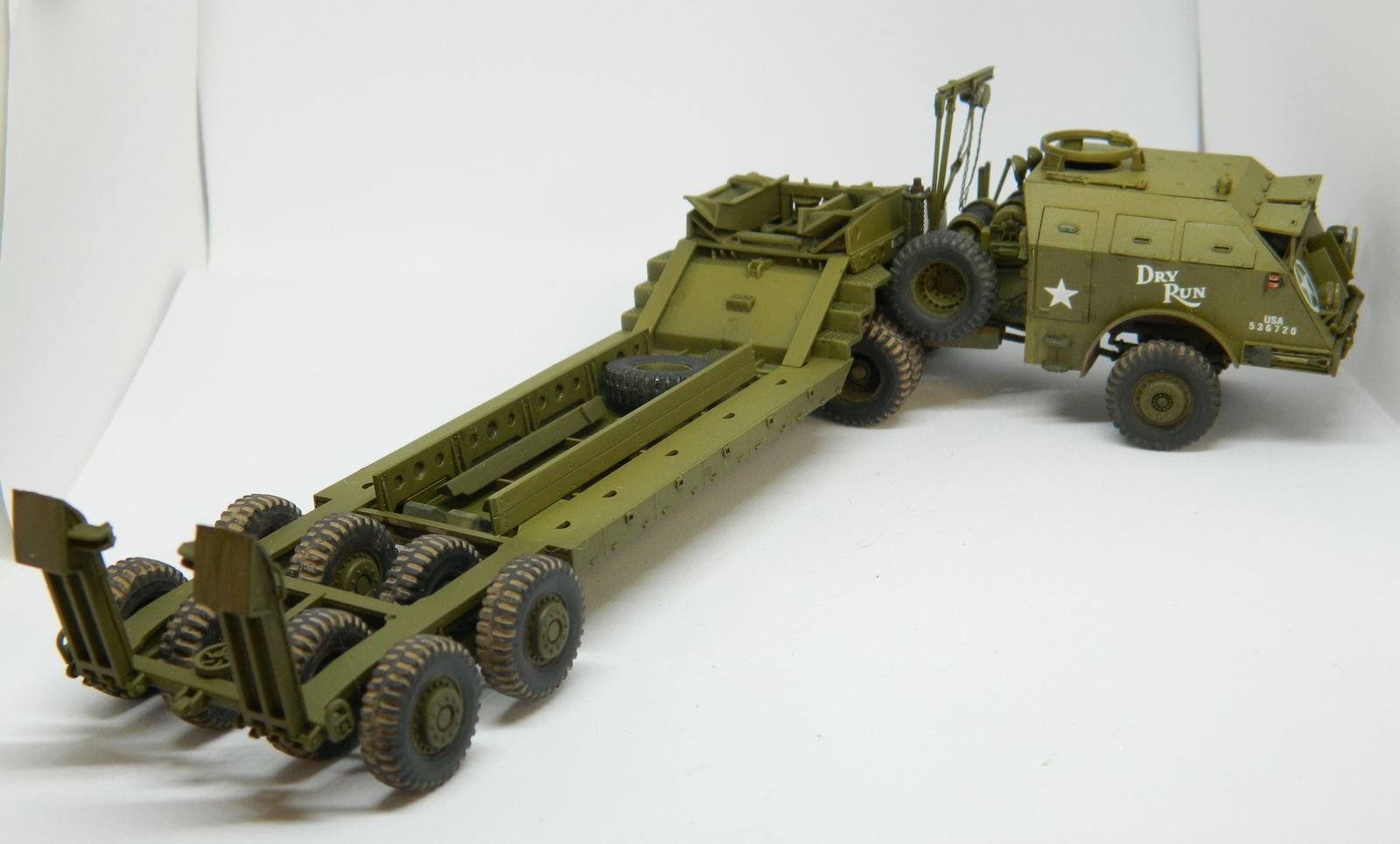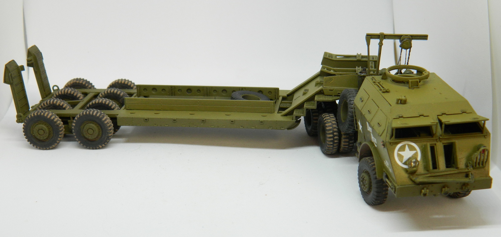 Модель отличная у Академ, и сборка понравилась. Вроде бы не хватает цепей, удерживающих поднятые балки прицепа, и пулемета на турели. Портят всю красоту решетки фар. Но и на моём стоит то же самое..