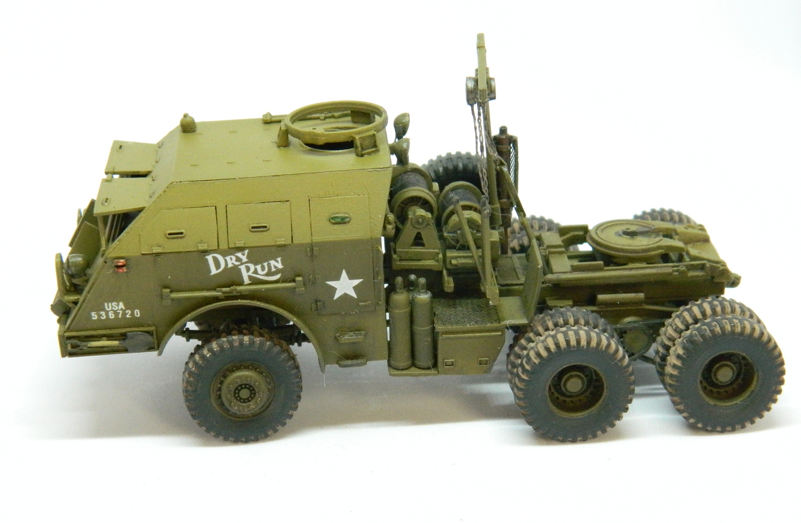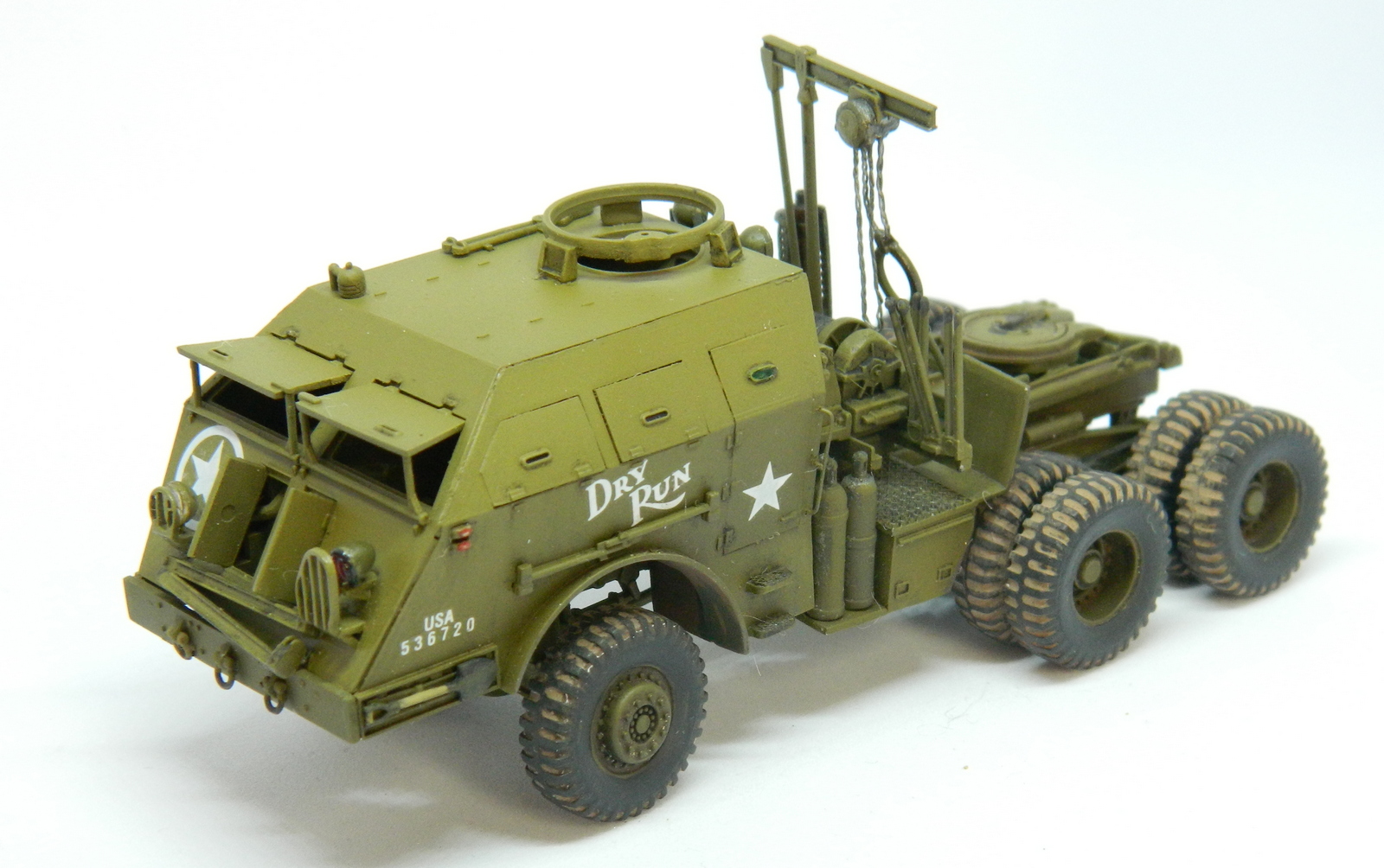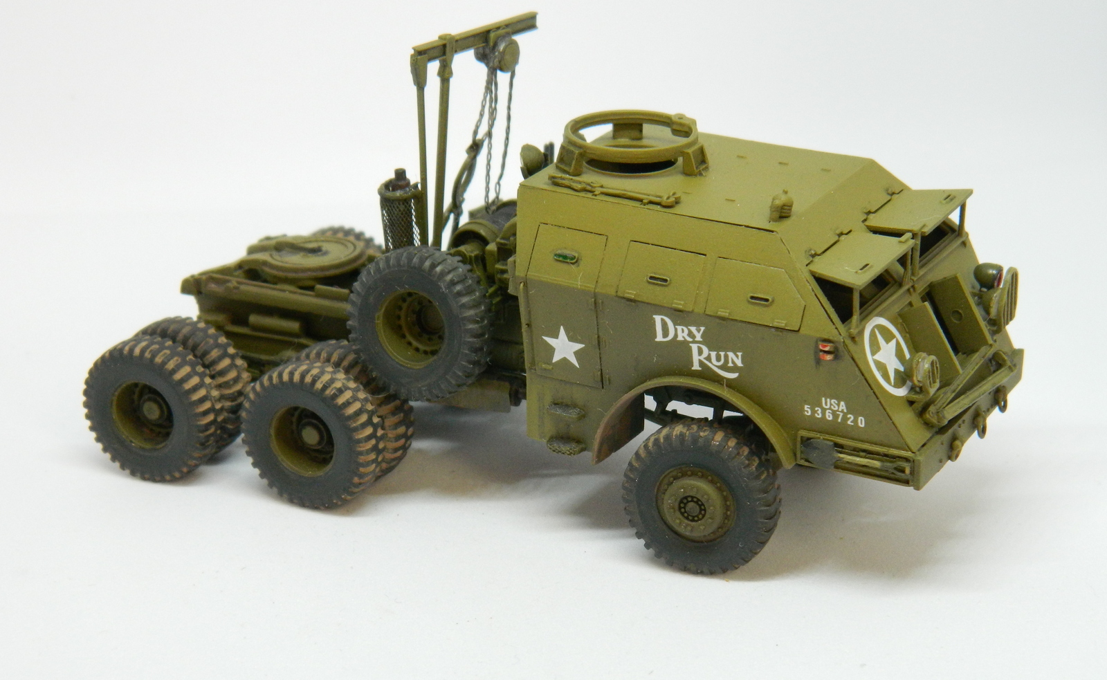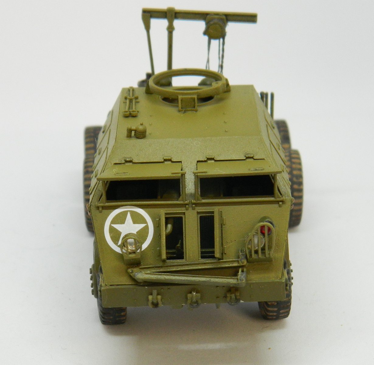 Модель отличная у Академ, и сборка понравилась. Вроде бы не хватает цепей, удерживающих поднятые балки прицепа, и пулемета на турели. Портят всю красоту решетки фар. Но и на моём стоит то же самое..