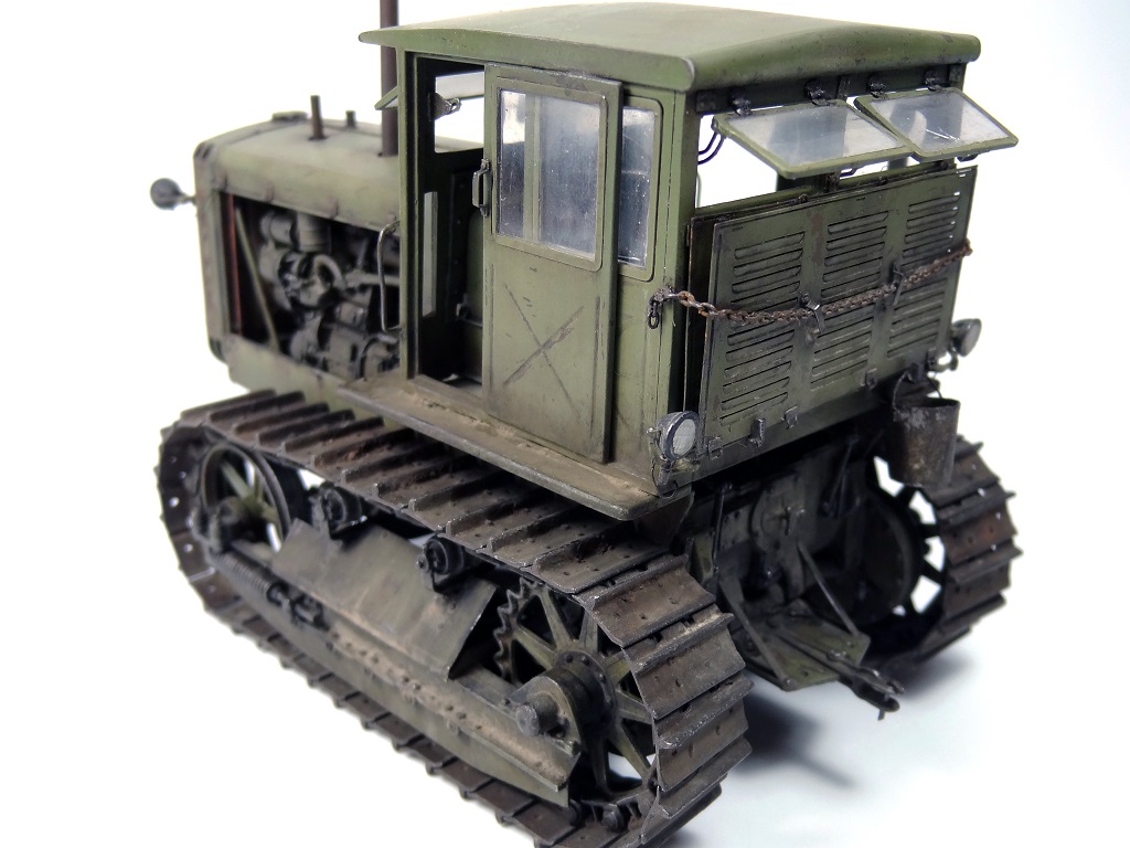 Трактор Сталинец С-65 от Trumpeter 1/35. Добавил двигатель от L.Z. MODELS. На двигатель добавил тяги, топливопроводы, проводку. Также проводку добавил и на фары. Использовал травление от Voyager Model. Выхлопные трубы - пластиковые трубки. Добавил тяги и проводку в кабине. Кронштейны сзади на кабину, цепь. Ну и конечно ведро. Куда же без него. Красил краской Gunze Sangyo. Везеринг AMMO MIG.
