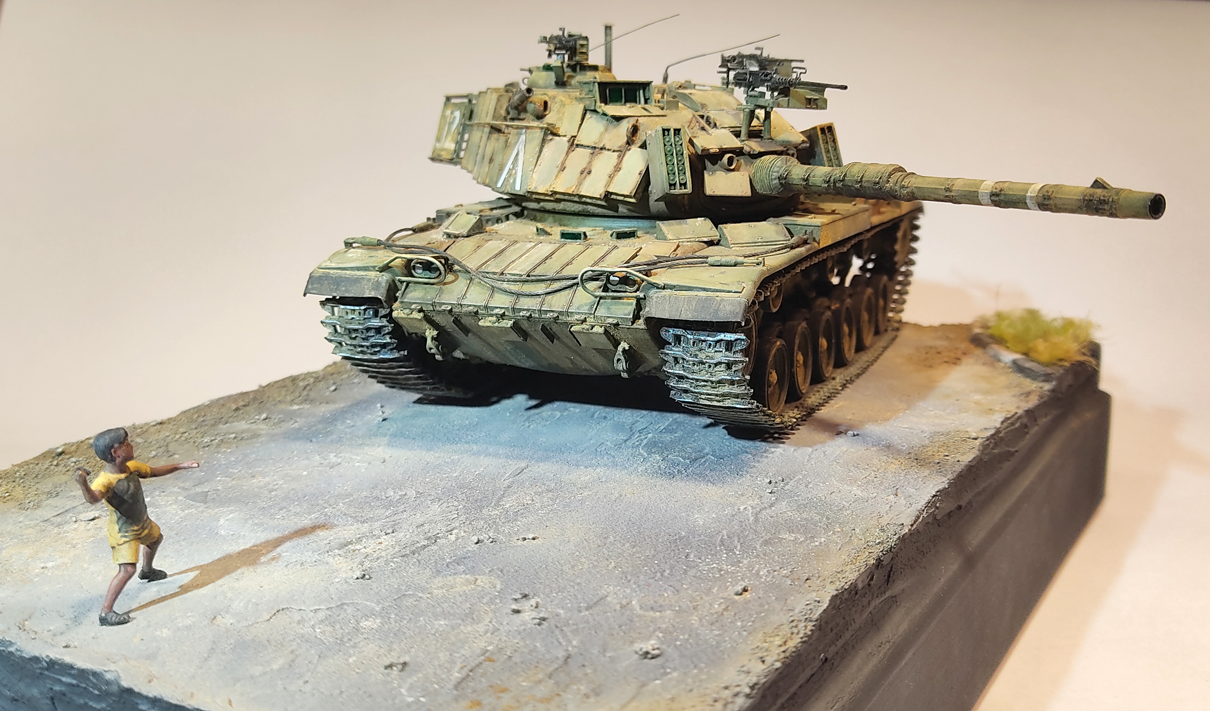 Работа, яркий пример как одна маленькая фигурка делает танк на подставке полноценной диорамой. Идея супер! Из какого набора мальчик?
