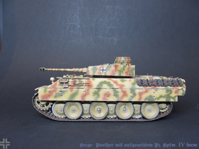 Приветствую Вас дорогие друзья! Представляю вашему вниманию свою очередную работу, сделанную на заказ- модель немецкого танка Berge-Panther mit aufgesetztem Pz.kpfw. IV turm als Befehlpanzer от фирмы Dragon.