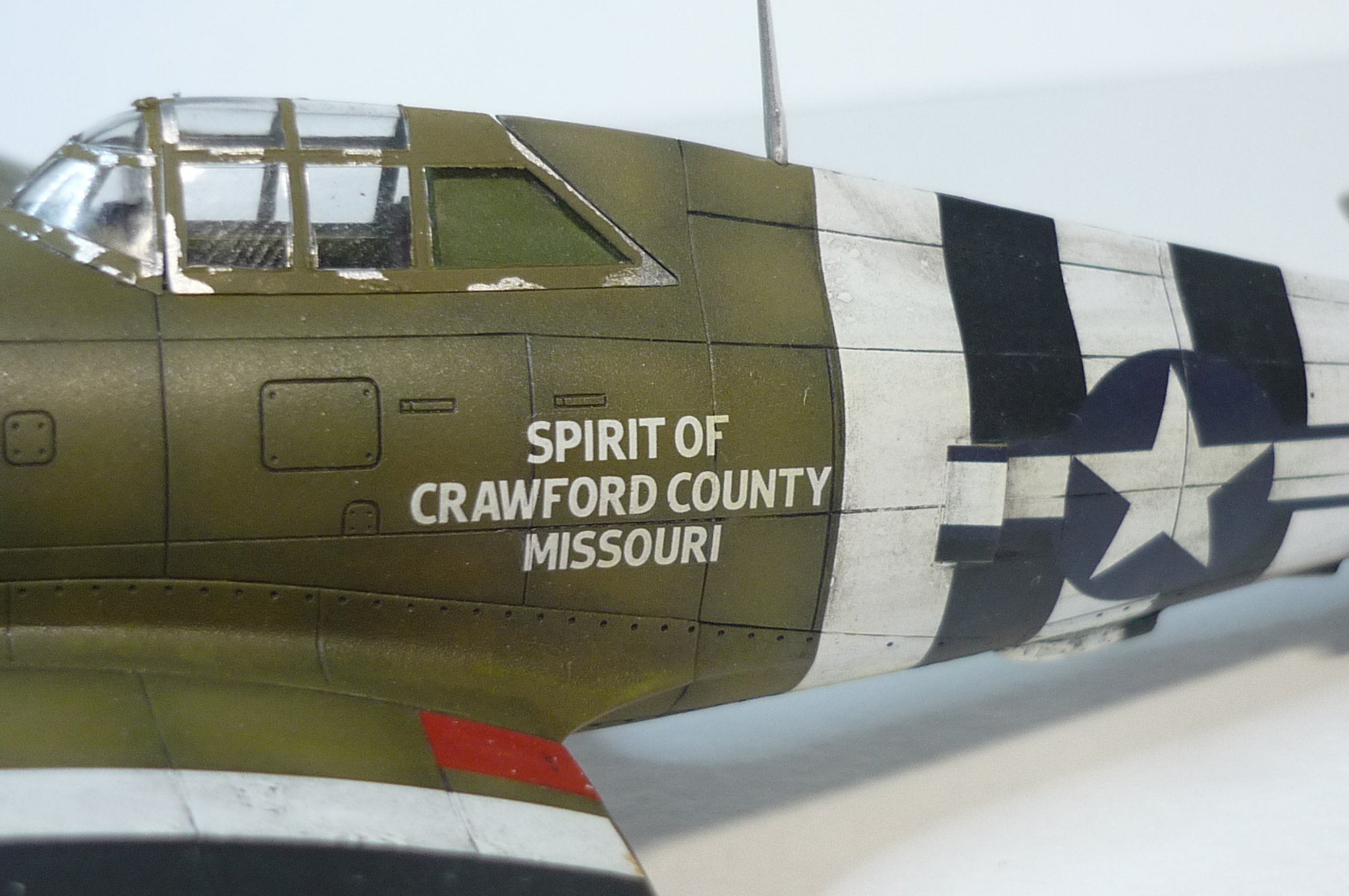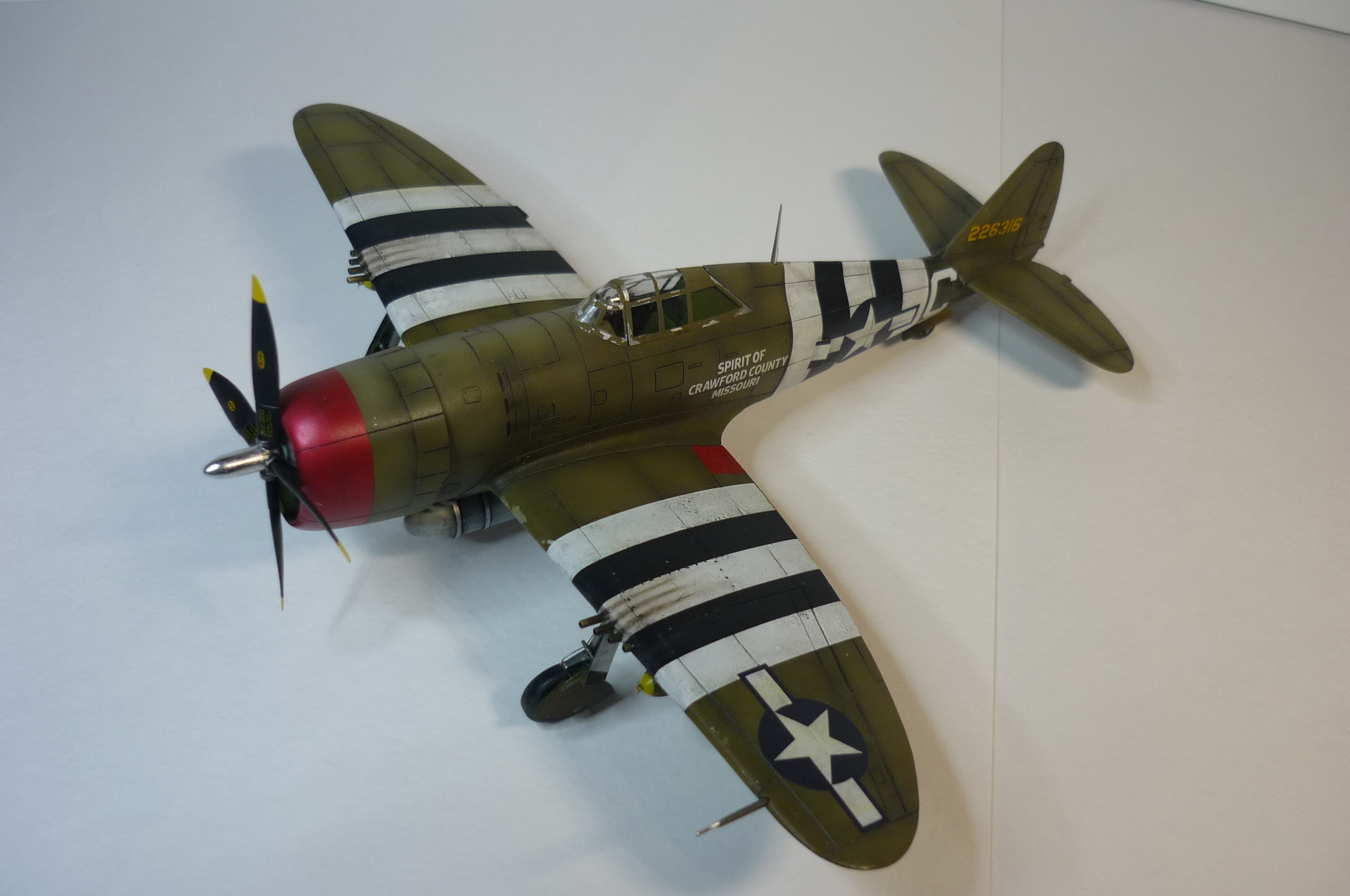 В качестве прототипа была выбрана именная машина построенная на личные средства жителей округа Кроуфорд штат Миссури. На собранные деньги планировалось построить бомбардировщик Б-17 или Б-24, но собранной суммы хватило только на истребитель. Thunderbolt P-47D названный "Дух Кроуфорда" который был направлен в Англию в состав 56-й истребительной группы.