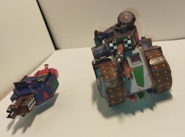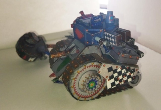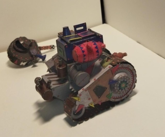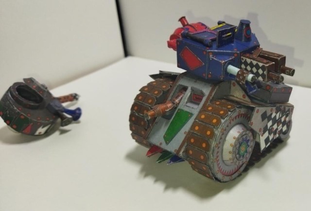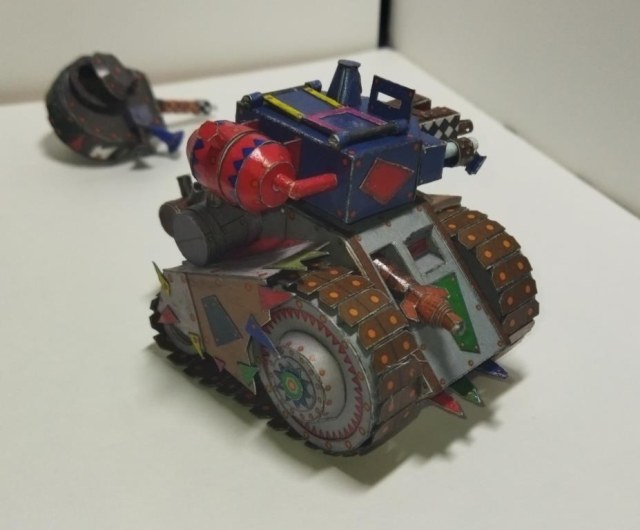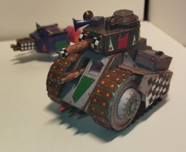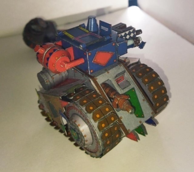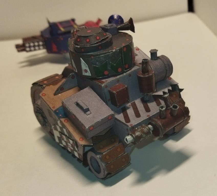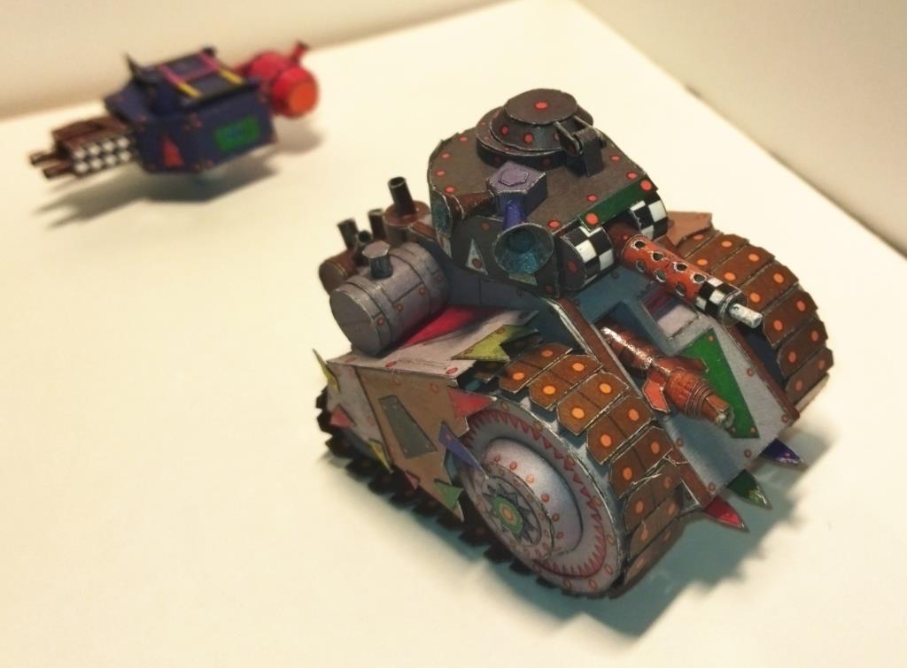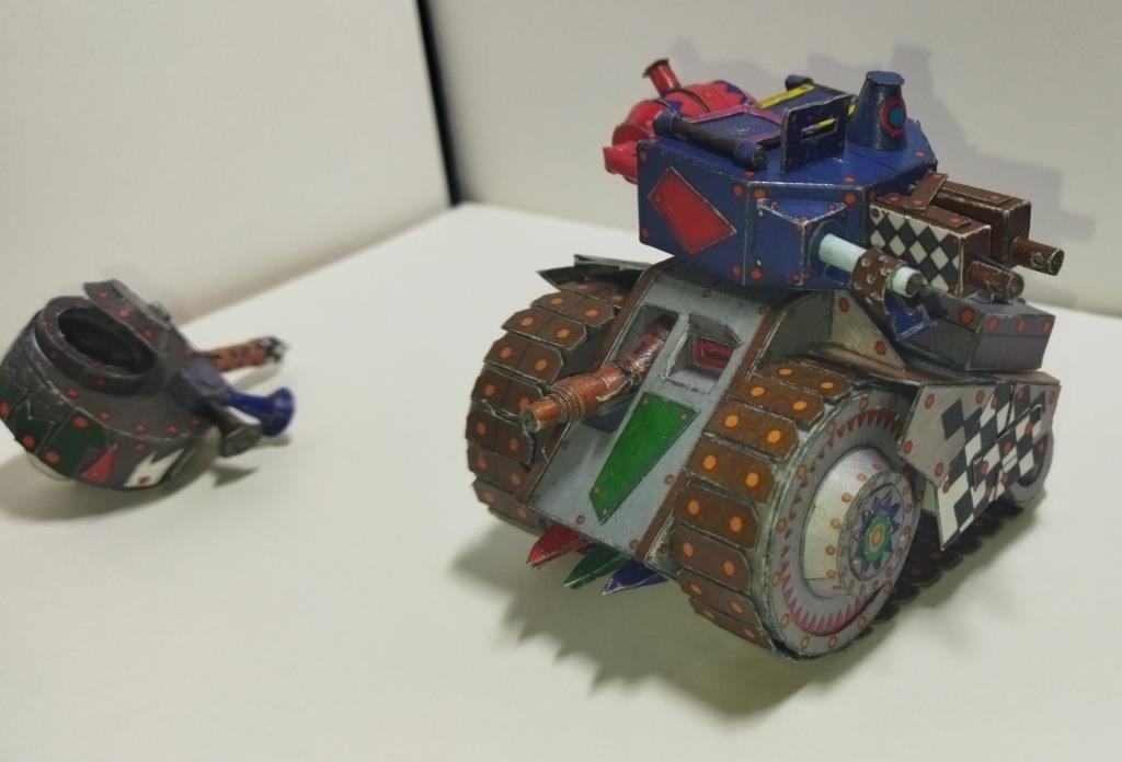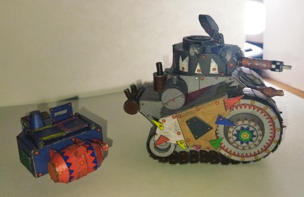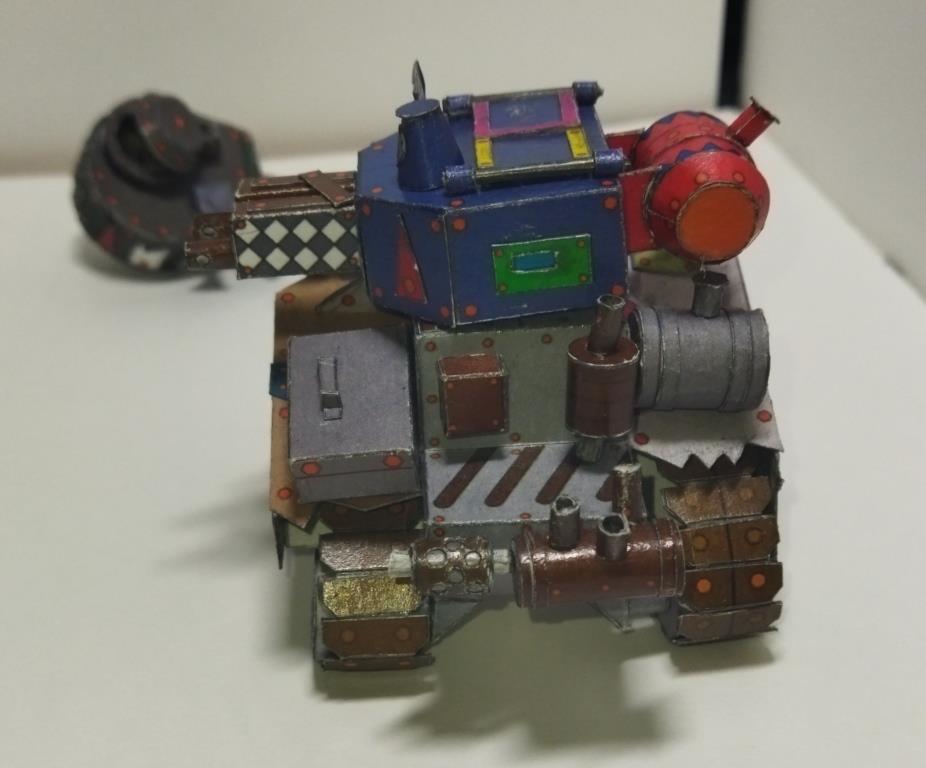 Моделька из вселенной Warhammer 40K. Мелкие танки расы орков собираемые гретчинами. Танки собираются из всего что получается нафармить на местной мусорке.