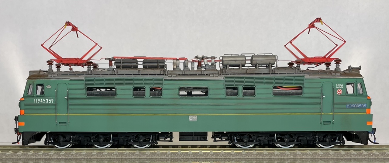 Ходовая часть от Александра - это не единственное, что было сделано для модели.. Сашей были напечатаны боковины телег, новые метельники, кабины, трансформаторы, а так же на ЧПУ вырезаны новые стекла, так как те, которые шли в комплекте, были толстыми и ходовка не влазила..