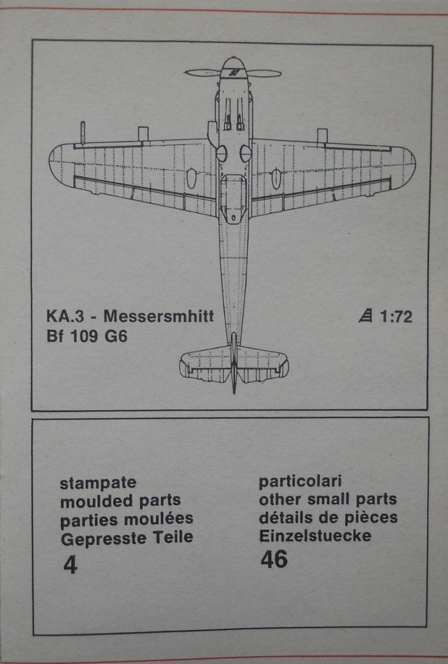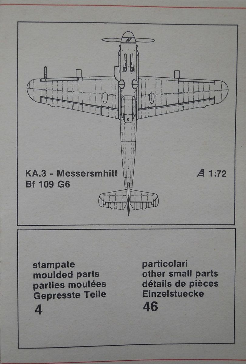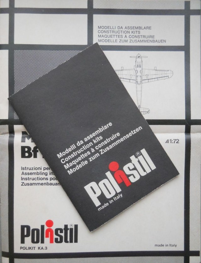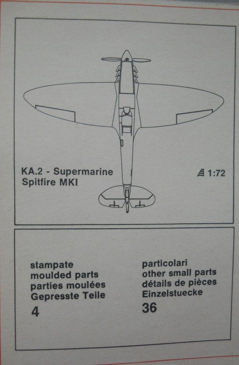 Модель от фирмы POLISTIL в масштабе 1/72 (арт. KA.3) попалась мне на глаза случайно и вызвала интерес исключительно с точки зрения «ретро моделизма». Коробка из плотного картона имеет датировку 1974 год. Внутри четыре литника серебристого пластика и один прозрачного, также имеется инструкция по сборке, декали и небольшая брошюрка с перечнем выпускаемого (на тот момент) данной фирмой ассортимента. Проработка модели, как мне кажется, вполне сопоставима с «модельными стандартами» этого периода. Декаль, на два варианта, выглядит сильно пожелтевшей от времени. Интересно то, что отсутствует хоть какая-то информация о вариантах окраски. Допускаю, что в моём случае комплектация может быть неполной.