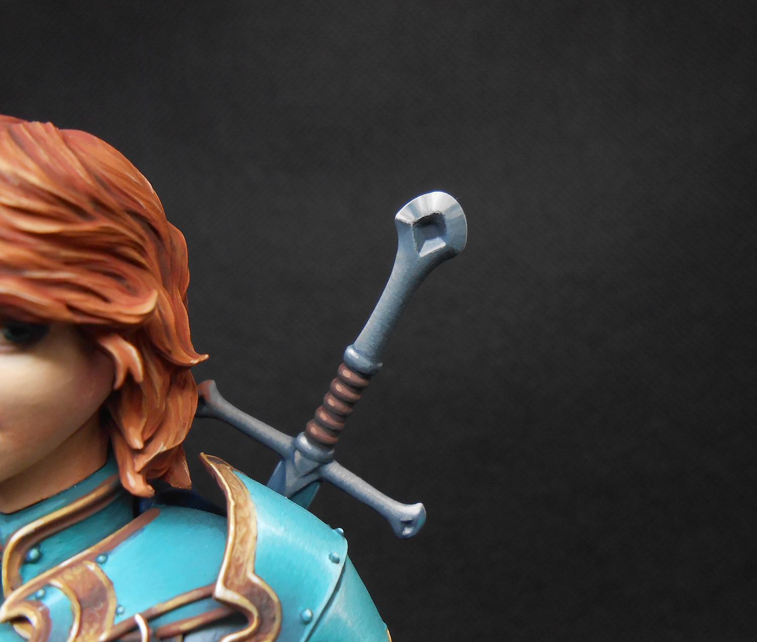 Бюст девушки с мечом. Материал бюста - смола, покрашен акрилом, подставка деревянная.