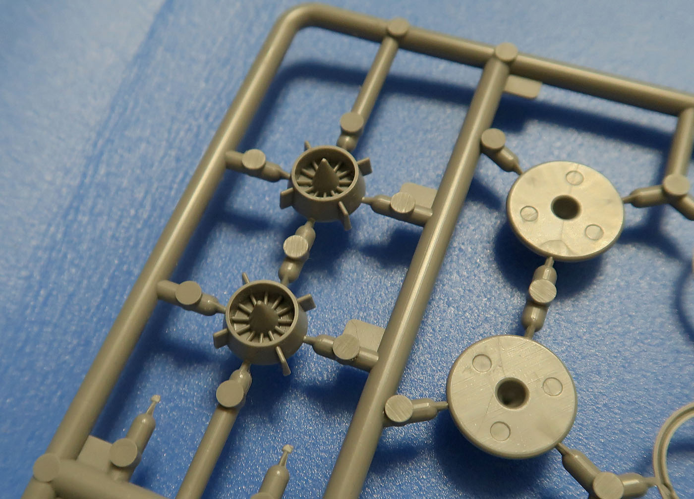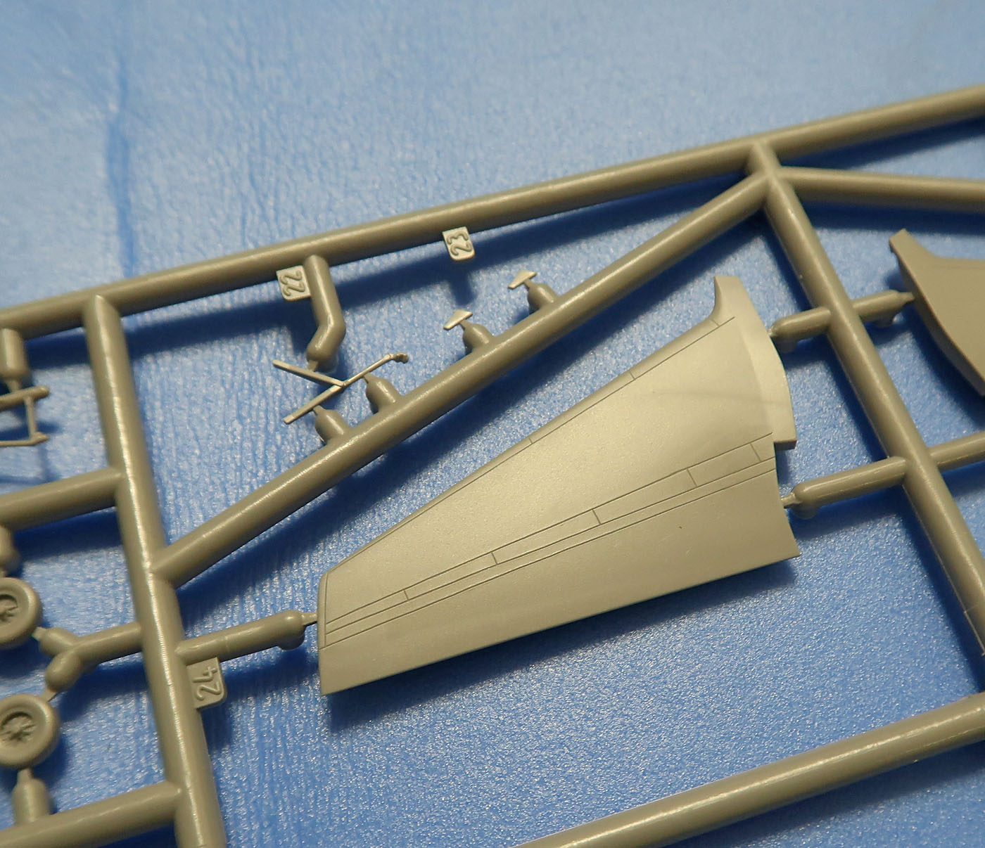 И финальный литник - все остальное. Кабина, стабы, шасси (два варианта колес основного шасси), законцовки (и простые и винглеты) etc