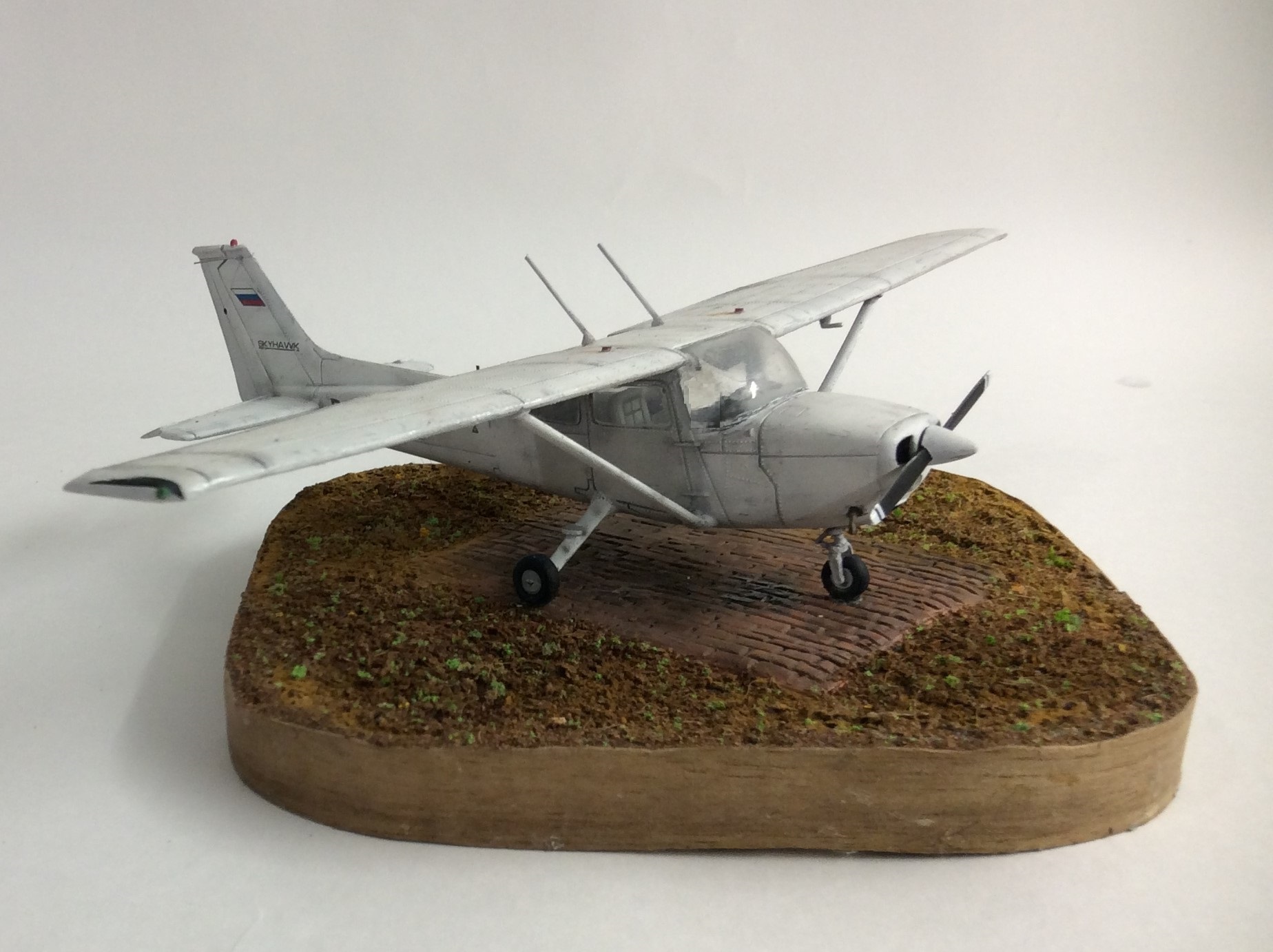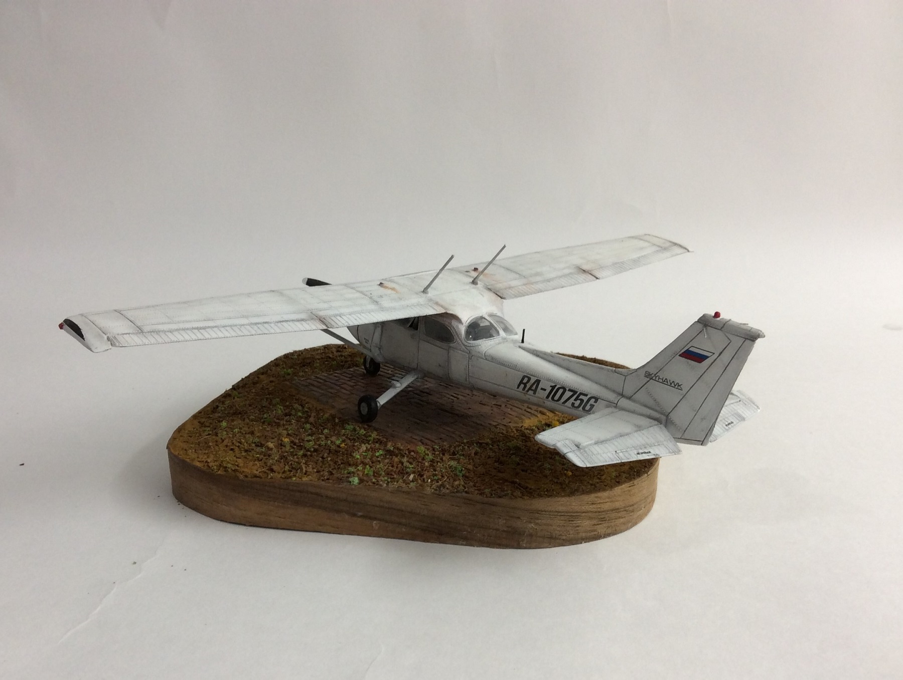 Собрал, от нечего делать. Борт моего товарища, на котором сам так же и летаю. Модель "из коробки" как говорится. Ничего не дорабатывал. Красил Тамией, следы ржавчины Zip. Да, кстати впервые отработал на терракотовой глине, которую использовал при создании подставки.