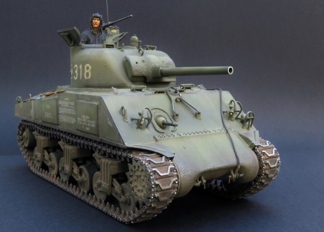 Приветствую Борис. Добавлю и свои 5 коп. Соглашусь, что модель 1 танка, собранная из разных наборов, точнее, деталей-остатков, но значимых для составления одной работы-занятие очень интересное. И так можно собрать модель, которую в целом никто не выпускает. В одном наборе не та башня или гусеницы, в другом - не тот угол наклона и дефекты литья и т.п. Здесь же можно аккумулировать верные составляющие из разных наборов, разных производителей. Качество твоих работ впечатляет, худ. часть всегда на высоте. Но мне вот подумалось-диски преимущественно цельные, могли ли они иметь преимущество среди прочих, в частности цельноспицованных? Корпус ведь по всем признакам ранний, да и башня с двустворчатым, тоже ранним командирским люком, относительно ранним корпусом с сухой укладкой, без крышки вентилятора, откидной полки и ранним расположением передних рымов на гласисе. Ограждения фар хороши, но все таки вижу, что травло для ограждения фар и гудка рулит, как не крути с 3D. В целом, очередной великолепный Шерман!