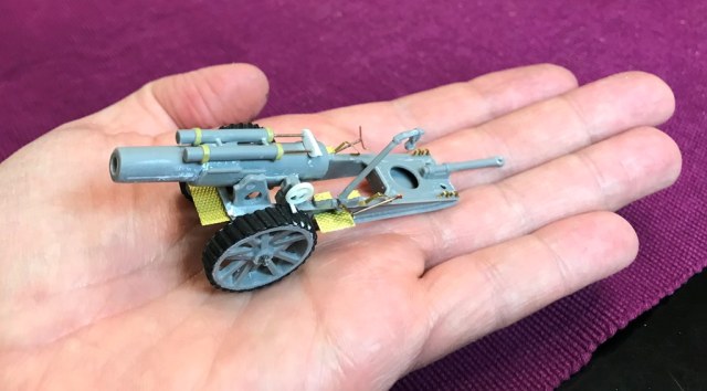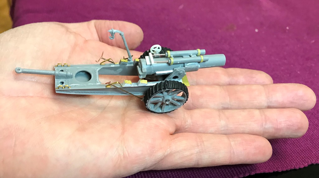 /И еще важный нюанс - друг попросил окрасить орудие а-ля как в музее. А в музеях (в разных странах) у таких лафетов грунтозацепы все в цвет колес/.