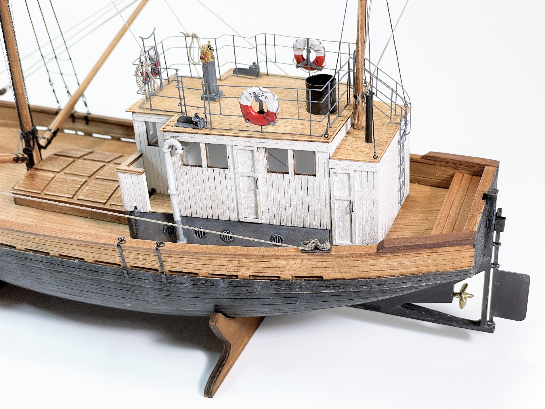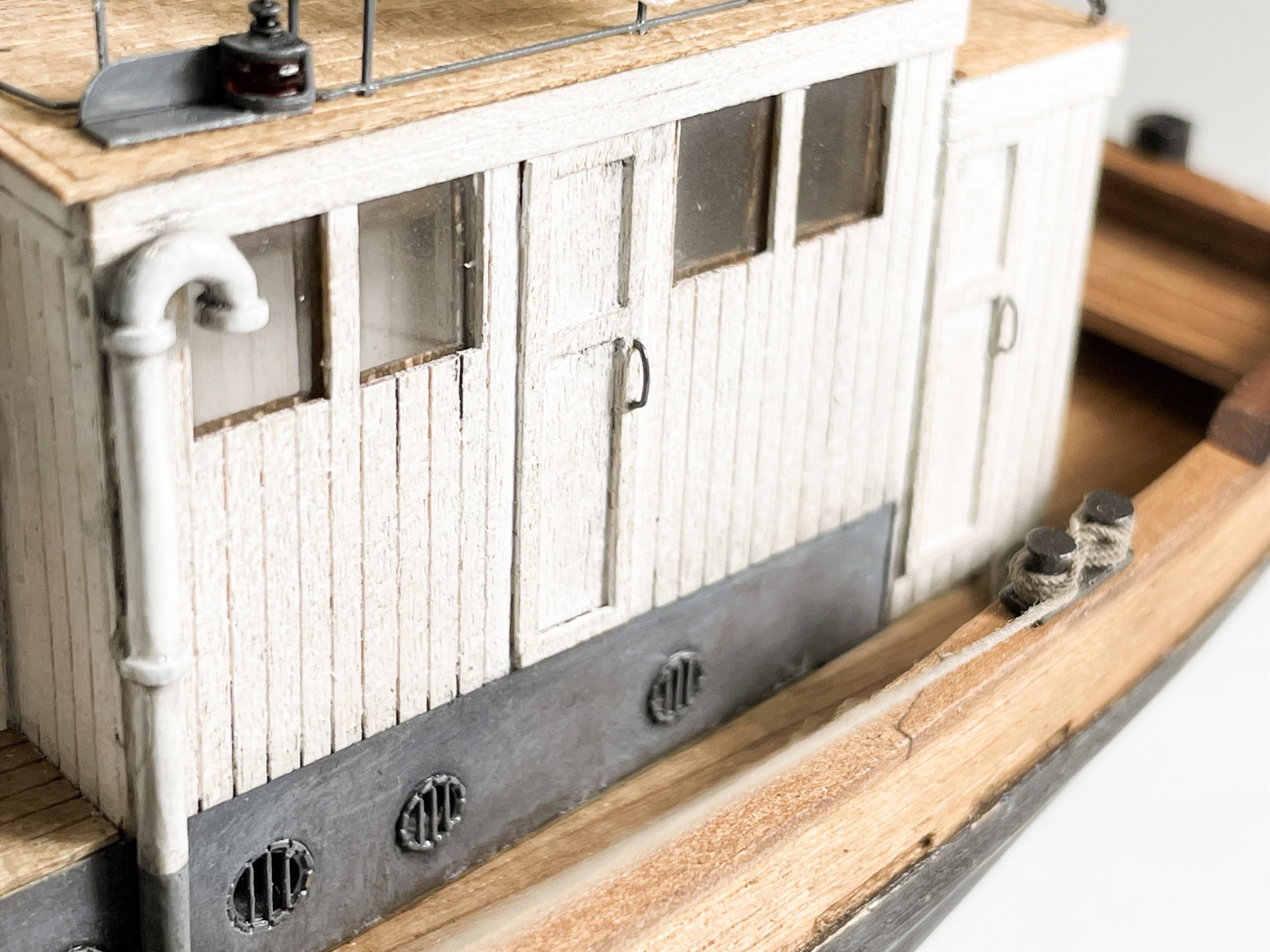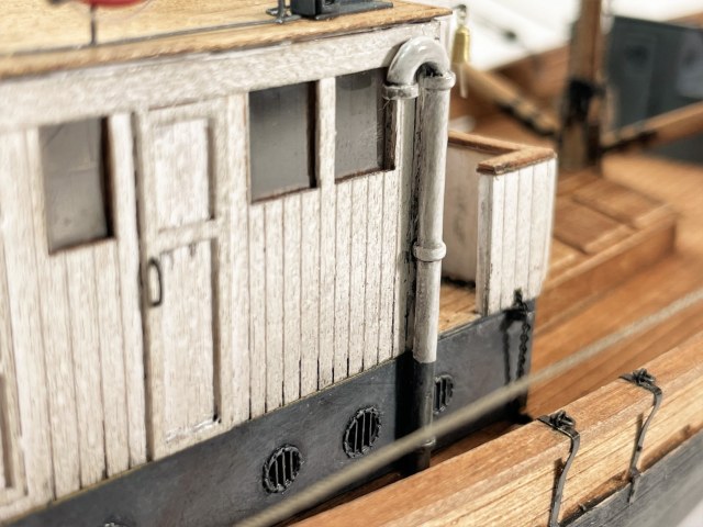 - добавил внутреннюю обшивку бортов (на оригинальном судне с внутренней стороны должны были выступать ребра металлических шпангоутов, но, как мне кажется, для начала века деревянная обшивка будет смотреться более аутентично);