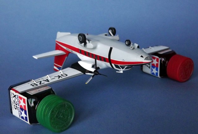 Таким образом, пришлось «обработать напильником»: мотогондолы, стыки крыла с фюзеляжем, коки винтов, хвостовой гребень, который был изготовлен заново, отсеки основного шасси в наплывах, которые были установлены под другим углом, щели зашпаклеваны и все это опилено, сами ниши шасси зашиты тонким пластиком от доширак, переделана ниша переднего шасси (щитки в закрытом положении). Но самое главное – нужно было привести округлое сечение фюзеляжа в усеченное снизу с формированием скул. Годы ушли на формирование обводов шпаклевкой и бесчисленные шлифовки, в результате что-то более/менее похожее удалось сформировать, насколько это возможно.
