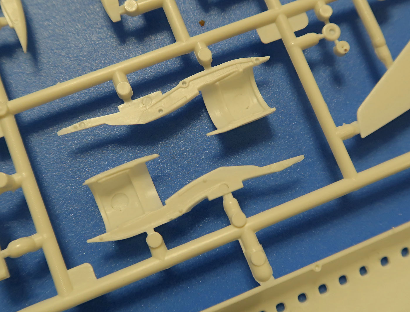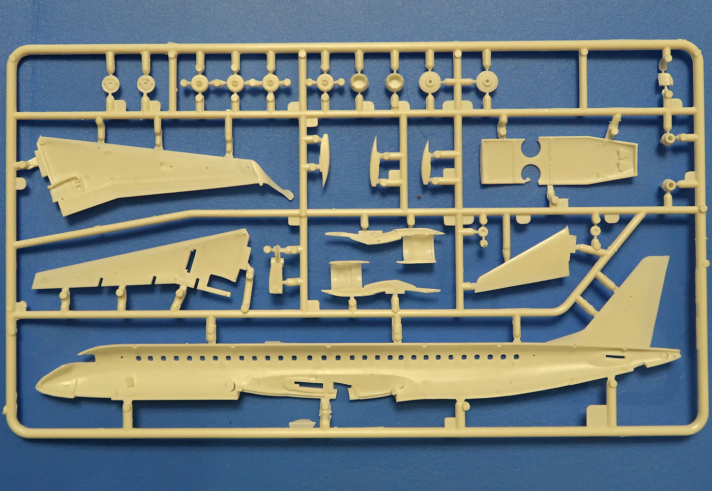Литник А: Правый борт фюзеляжа, левая консоль, один двигатель, один стабилизатор, нижняя панель, колесики.