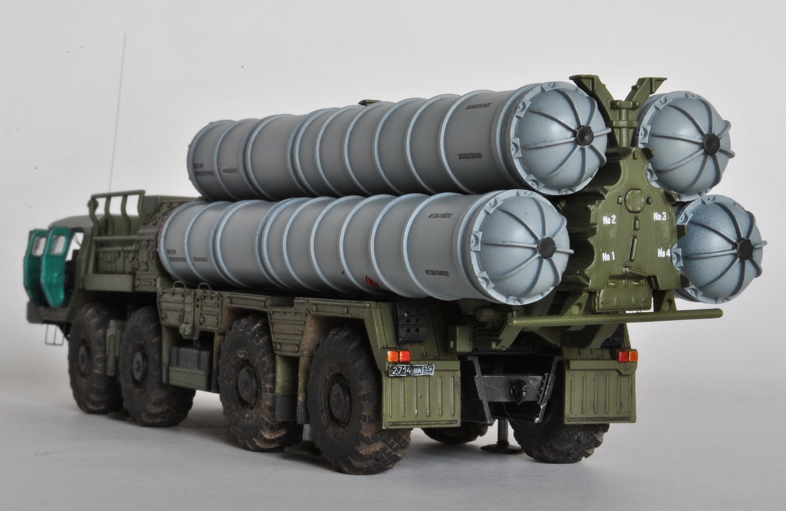 Несколько лет в грунте ждала окраски модель от китайцев и, наконец, дождалась)). До Моделколлекта единственной альтернативой машинам комплекса С-300 были дровища от PST из прошлого века, китайцы же позволили без диких перепилов поставить на полку модель ПУ этого зенитного комплекса. Но, по сравнению с недавно вышедшей моделью от Звезды, и Моделколлект выглядит очень блекло и упрощенно в плане проработки кабины и шасси (собирая сейчас, я бы взял их от Звезды). Единственный сомнительный плюс китайской модели – сами ракеты и возможность открыть двери кабины. Я заменил только колеса на Армори (см сравнение с искоробочными на фото) и ограничился мелкими доработками (см допокрасочное фото), сохранив возможность перевода из походного положения в боевое, а точнее в «выставочное». Китайцы «зажали» не только трос и прочую мелочь, но и хорошо заметный выхлоп – пришлось делать самому, регистрационные номера от Армори.