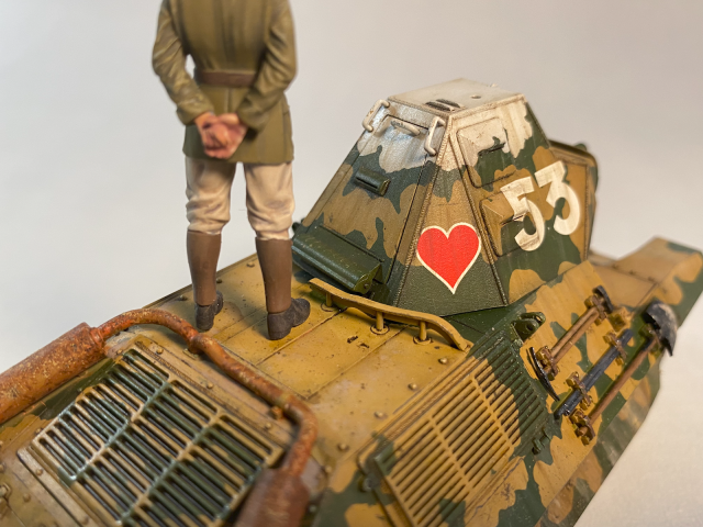 Представляю вам FCM от ICM. Набор хороший в работе, по сборке все ок, не припомню неприятных моментов. Ствол заменил на металлический. Гусянка слабое место модели, но жаба победила и металлические гусеницы не стал брать. Цепь как по мне немного переразмерена. Фигурка из предзаказа.