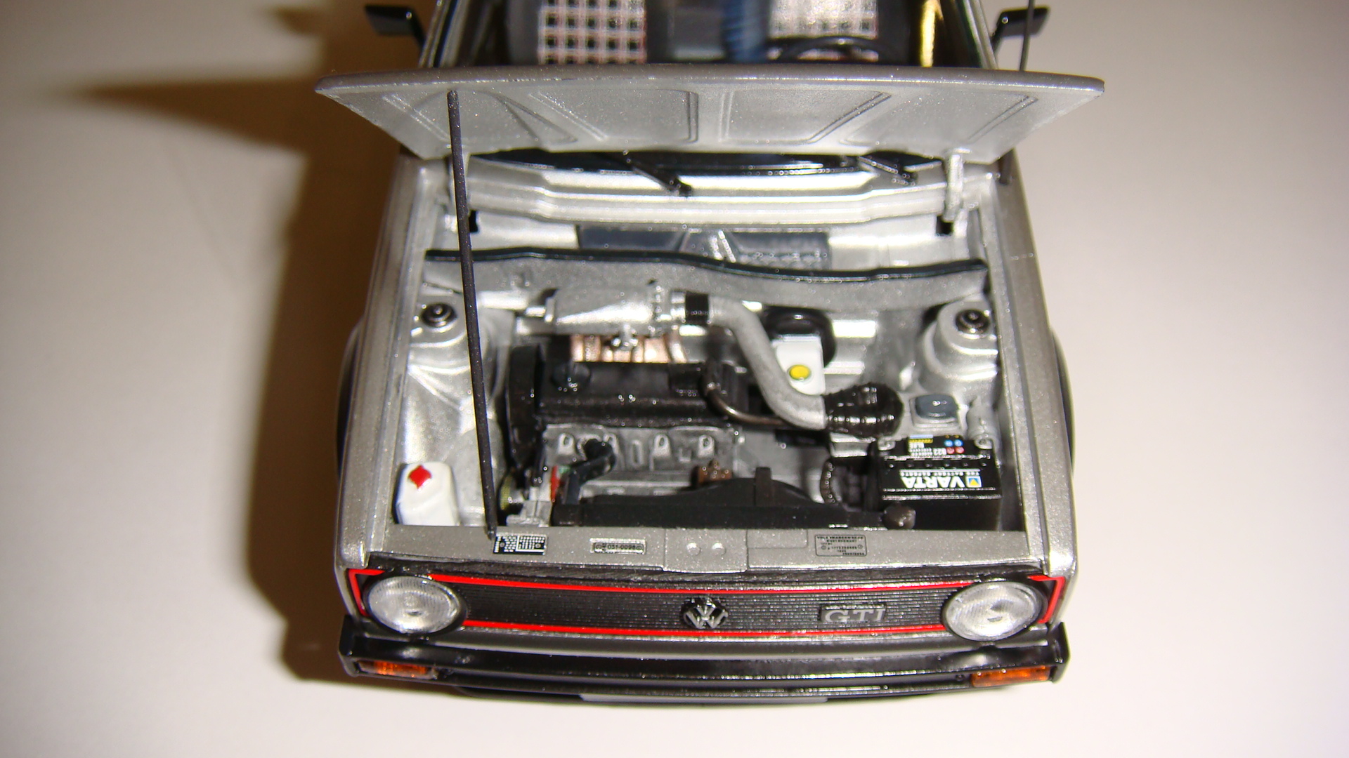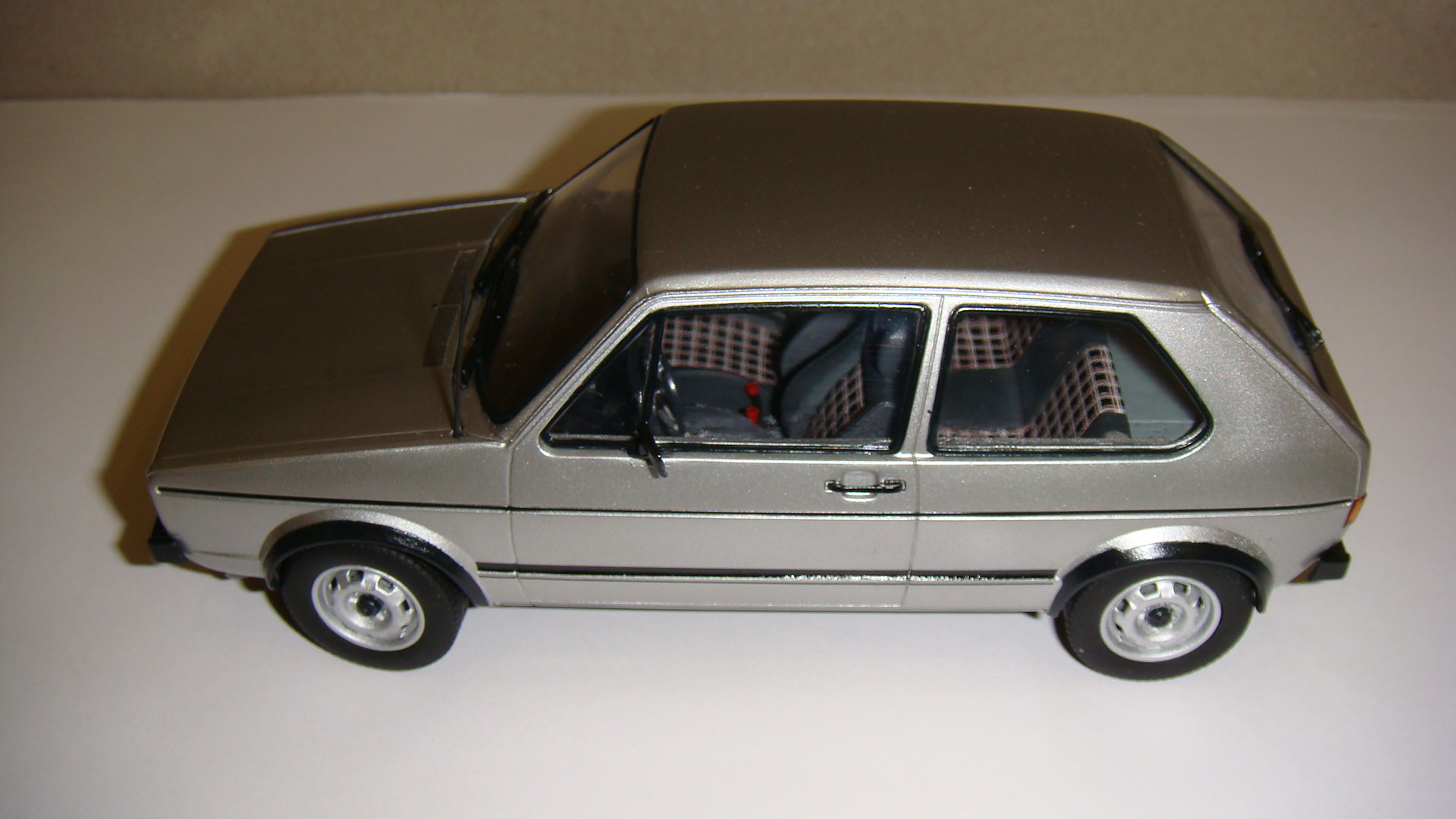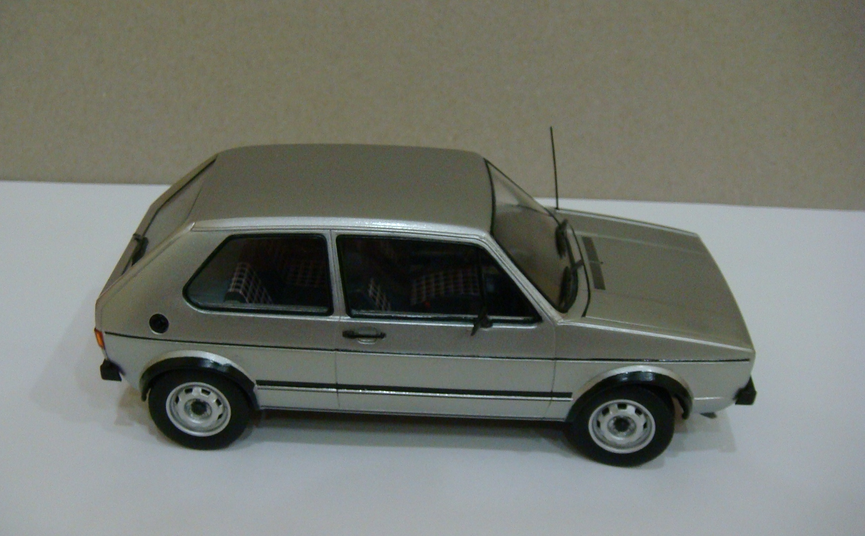 Приветствую всех коллеги. Одному очень хорошему моему приятелю решил я собрать эту машину, Фольксваген Гольф-1 в 1/24 от Revell. И тем самым попробовать как у меня это выйдет. Машины такого масштаба я еще ни разу не собирал. Это мой, так сказать, дебют, в этом масштабе. Что получилось оценивать Вам. Полная изкоропка. Машина сделана ровно за две недели. Красил аэрографом. Серебрянка от Пацифик для аэрографа, мелкие детали тамия-акрил матовый, лак тамия,футура. Грунт от ганзы.