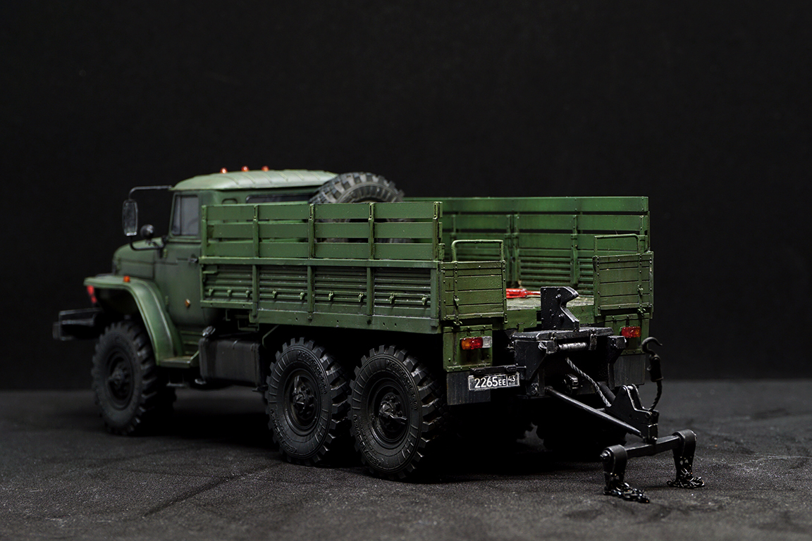 Собирал модель полностью из коробки, заменил только колеса на МиниАрм. На Каме Урал выглядит брутальнее, на мой взгляд.