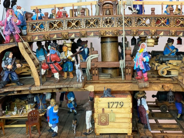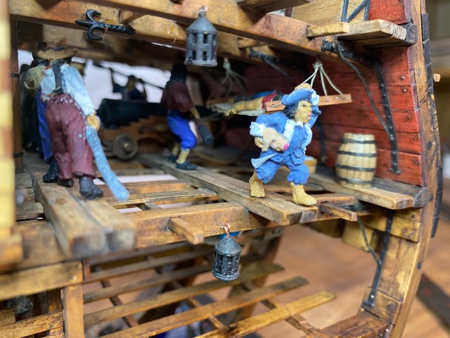 2-нелогично отсутствие настила палубы на которой стоят люди и пушки
