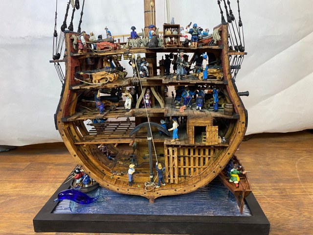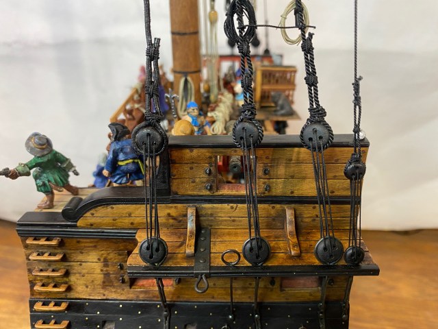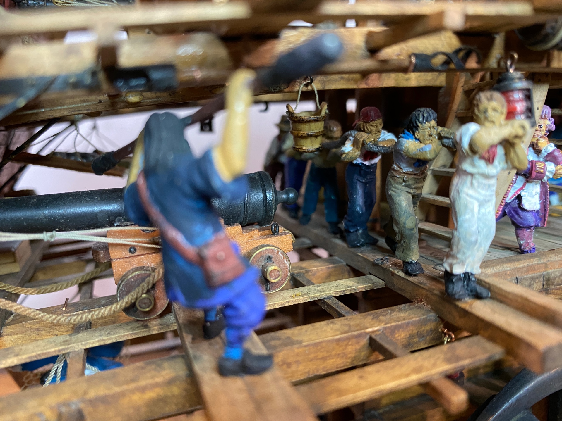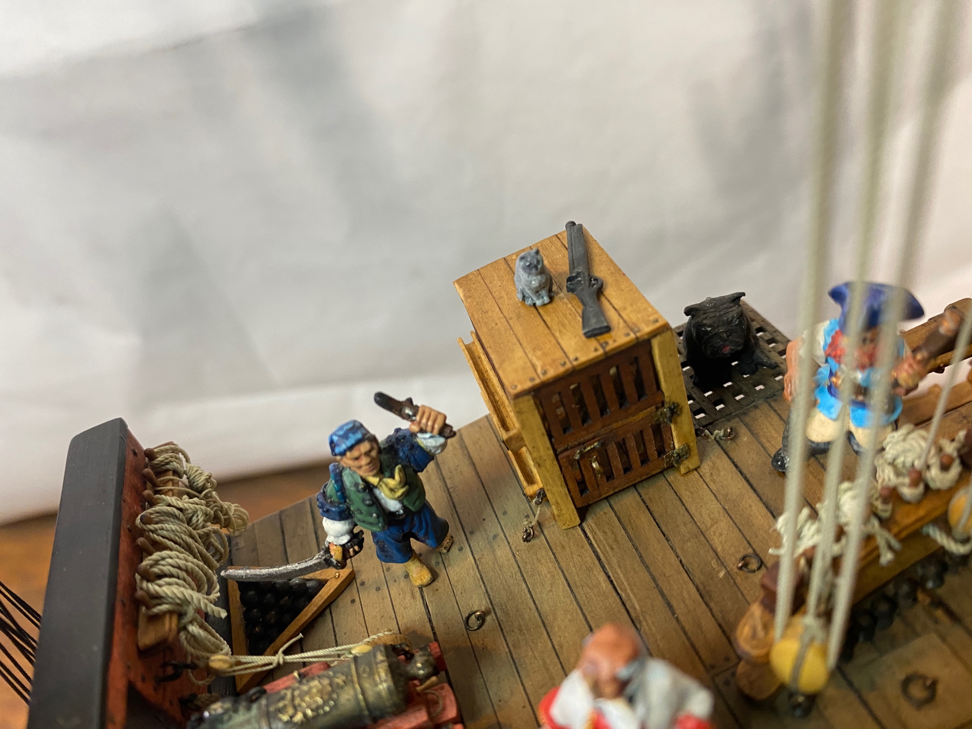 Корабельные элементы- замечательно. Точно,грамотно,все на местах и в функционировании. Цвета натуральные, масштабность -на уровне. Команду судить не могу по причине собственной бездарности в этом отношении. Все живо. В общем - МНЕ ПОНРАВИЛОСЬ. Замечательно. БЕЛЫЕ шары,только белые. ЗБЗ.
