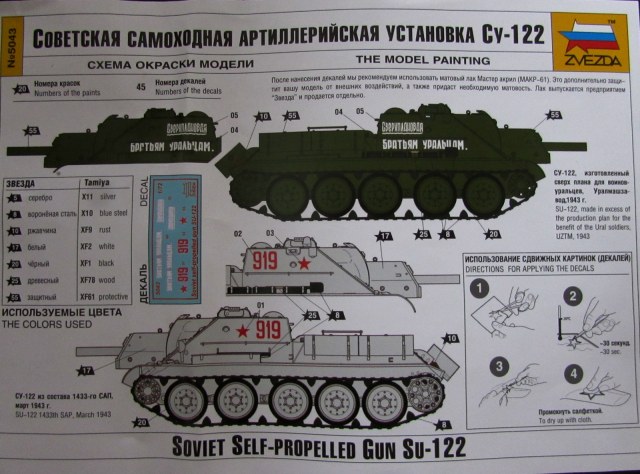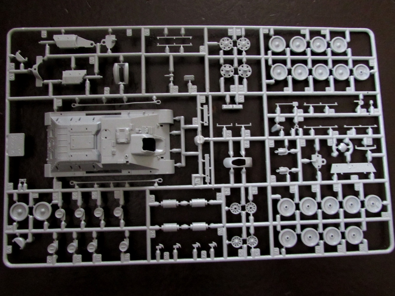Модель упакована в коробку стандартного для этой серии размера. Загрузка горизонтальная. Внутри - олин литник с деталями, ванна корпуса, декаль на два варианта и инструкция. Также, уже по традиции для фирмы, вложен маленький цветной листочек со схемой окраски.