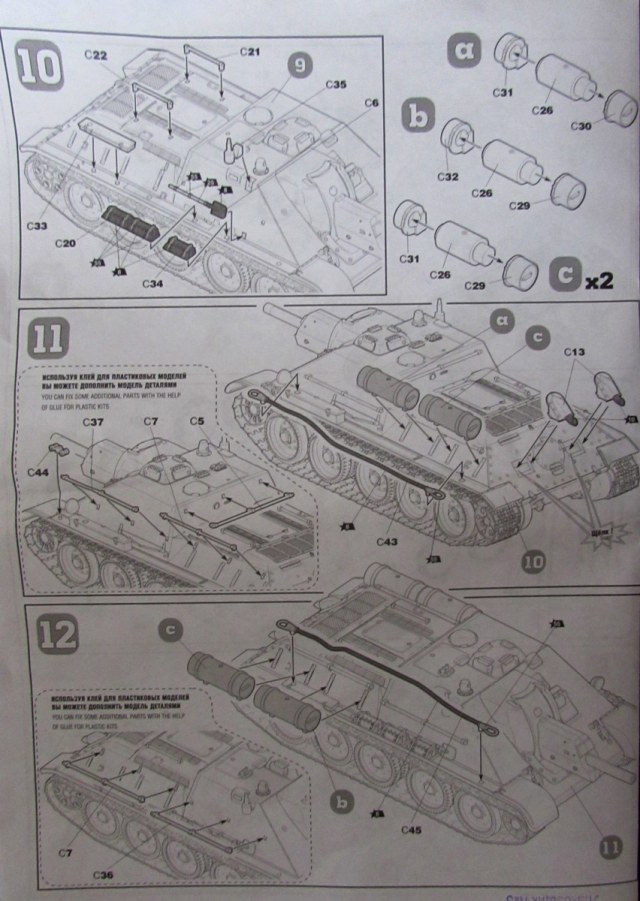 В общем и целом, это модель-полуфабрикат, причем полуфабрикат "высшей пробы": даже при не вдающейся в матчасть сборке модель требует затрат, приблизительно в 3 раза превосходящих стоимость самой модели (катки, баки, патрубки, ствол). Ну а уж если подходить к модели со всей серьезностью, то ценник как бы не перебил стоимость полноценных наборов Григорова в смоле. Но при всем при том, это увы, пока что лучший набор СУ-122 в данном масштабе - УМ требует не меньших трудозатрат (если не больших), ВЭ/Моделист вообще нелзя рассматривать всерьез, а какая-то смоляная конверсия (рубка + перед корпуса) требует довольно-таки прямых рук и умения пыпиливать ненужное при установке.