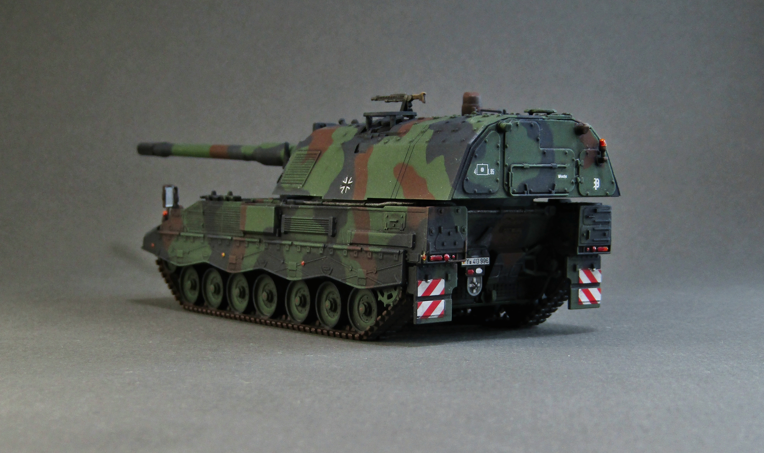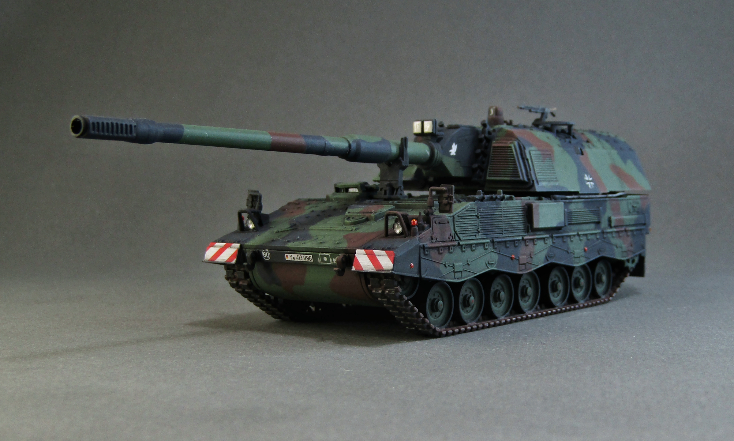 Приветствую коллеги! Вот и снова представляю бронетехнику в 72-м. Модель немецкой гаубицы в представлении не нуждается, от себя лишь напишу что в сборке она очень простая и приятная. Собирал изкоробки. Грунтовал серым грунтом от Тамии. Красил XF-67 "NATO GREEN" от Тамии, RC082 и RC081 от AK. Камуфляжные пятна наносил при помощи розового Patafix от UHU. Смывка чёрная от Тамии. Финишный матовый лак от Revell. Фары - самоклеющиеся стразы для ногтей, остальные приборы цветными витражными лаками. Приятного просмотра коллеги...