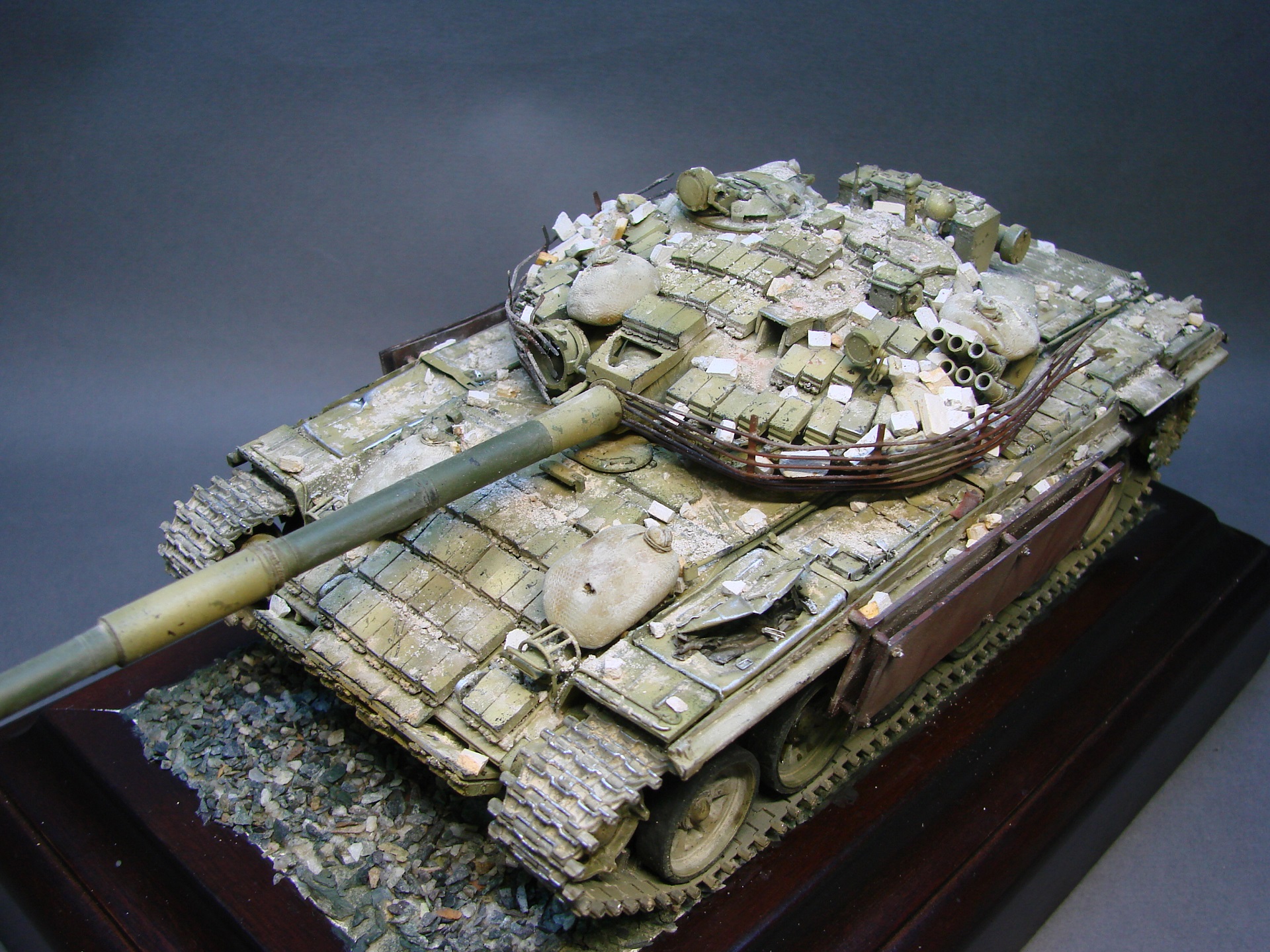 Видимо, всё зависит от временного периода и места. Хотя соглашусь, Т-55 гораздо чаще можно увидеть завешенным шмурдяком экипажа и "мародёркой", чем Т-72. Но и последние в подобном виде встречал не раз.