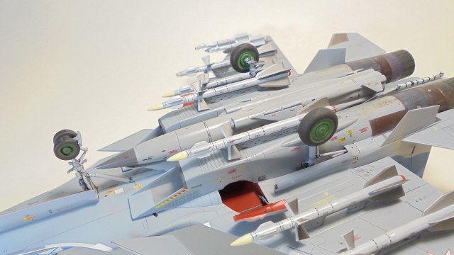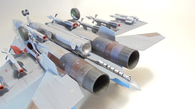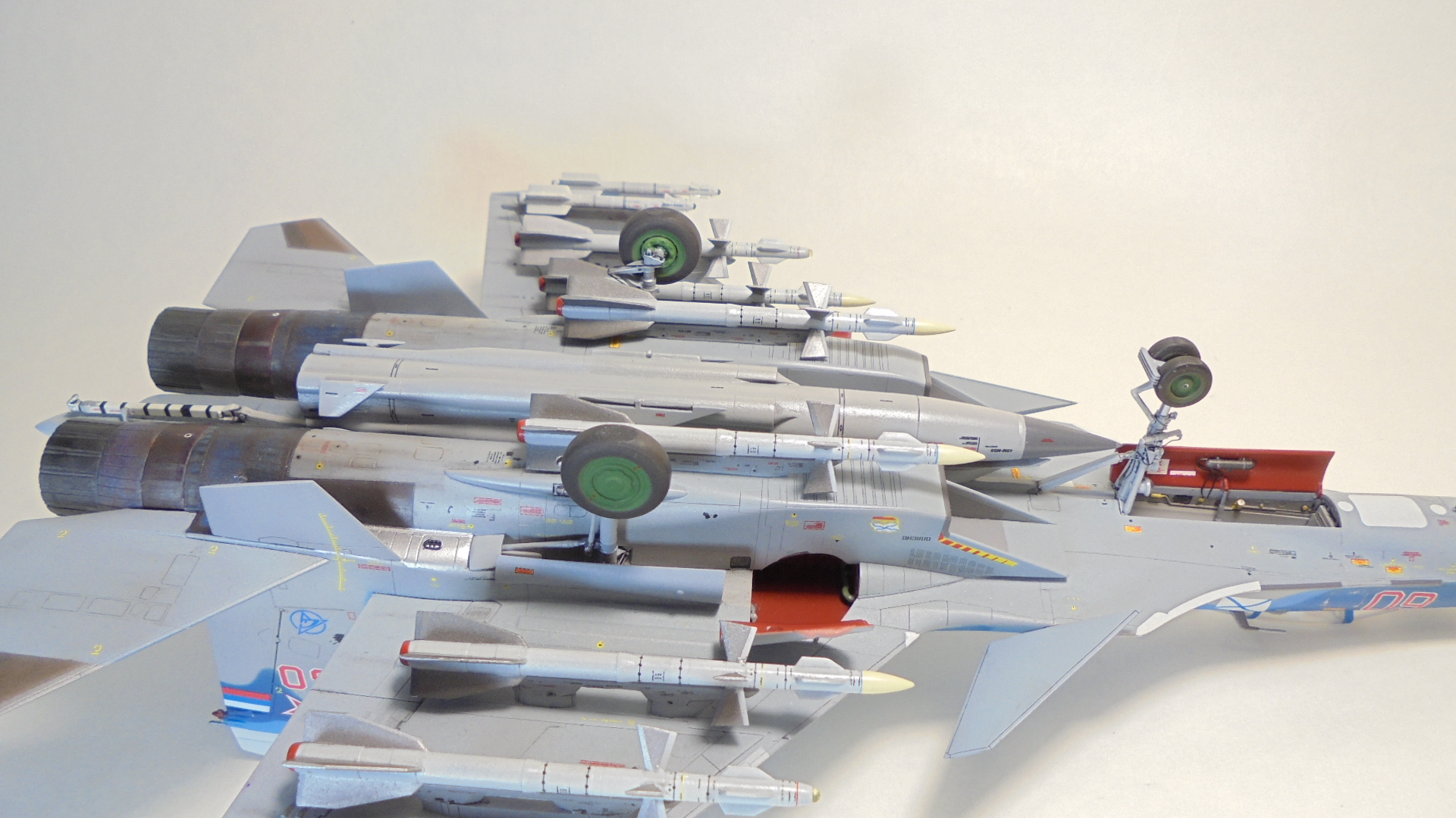 У меня тоже вызывает досаду серый цвет, мне тоже видится что он мимо. Понимаю, что допы удовольствие не дешевое. Но соплам стоило все же сточить кромки. Ну и если решили подвесить москит, я бы на вашем месте не вешал остальные, чтобы подчеркнуть основное изделие. Это моё видение вашей работы. В целом, приятно выглядит.