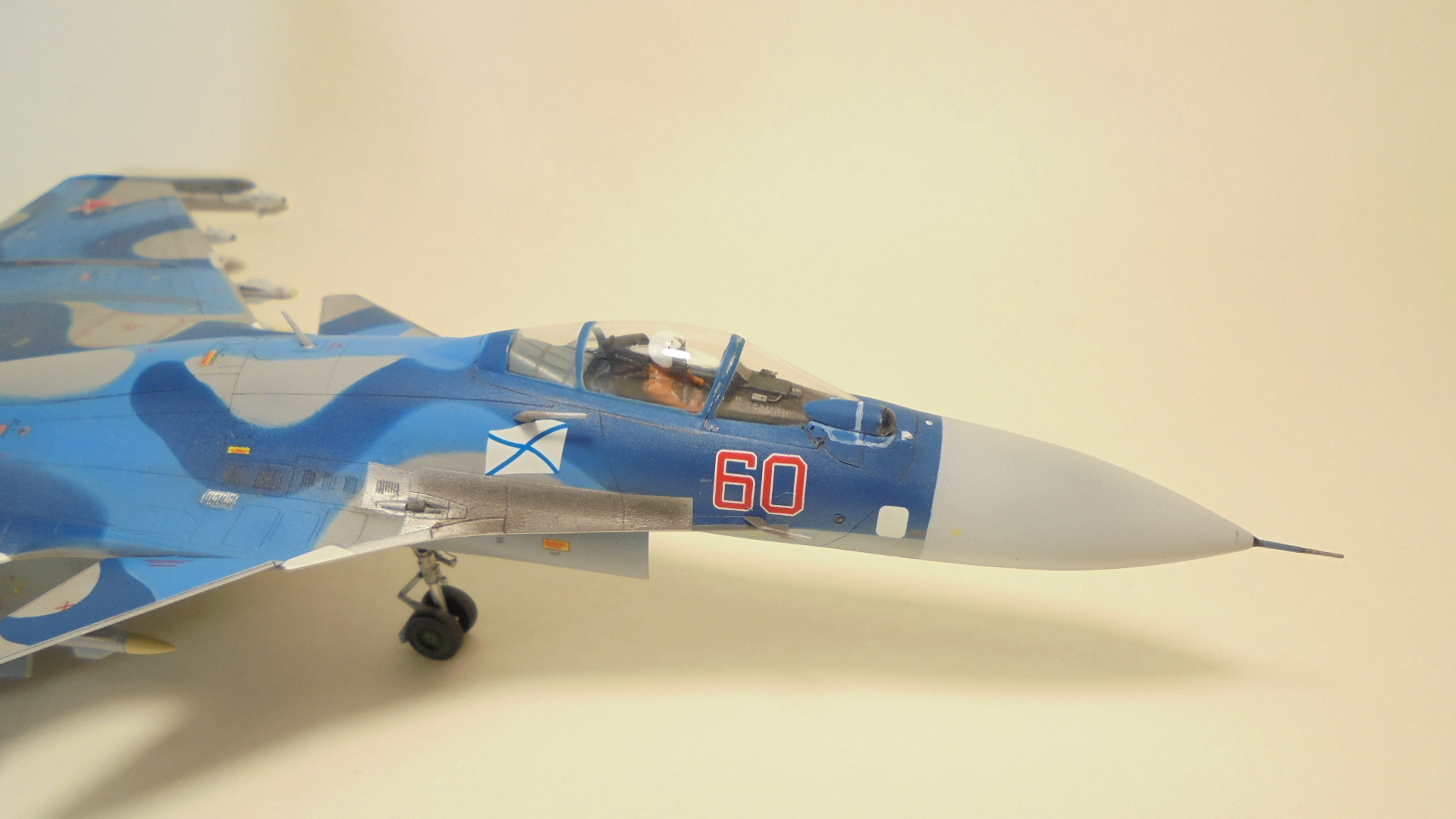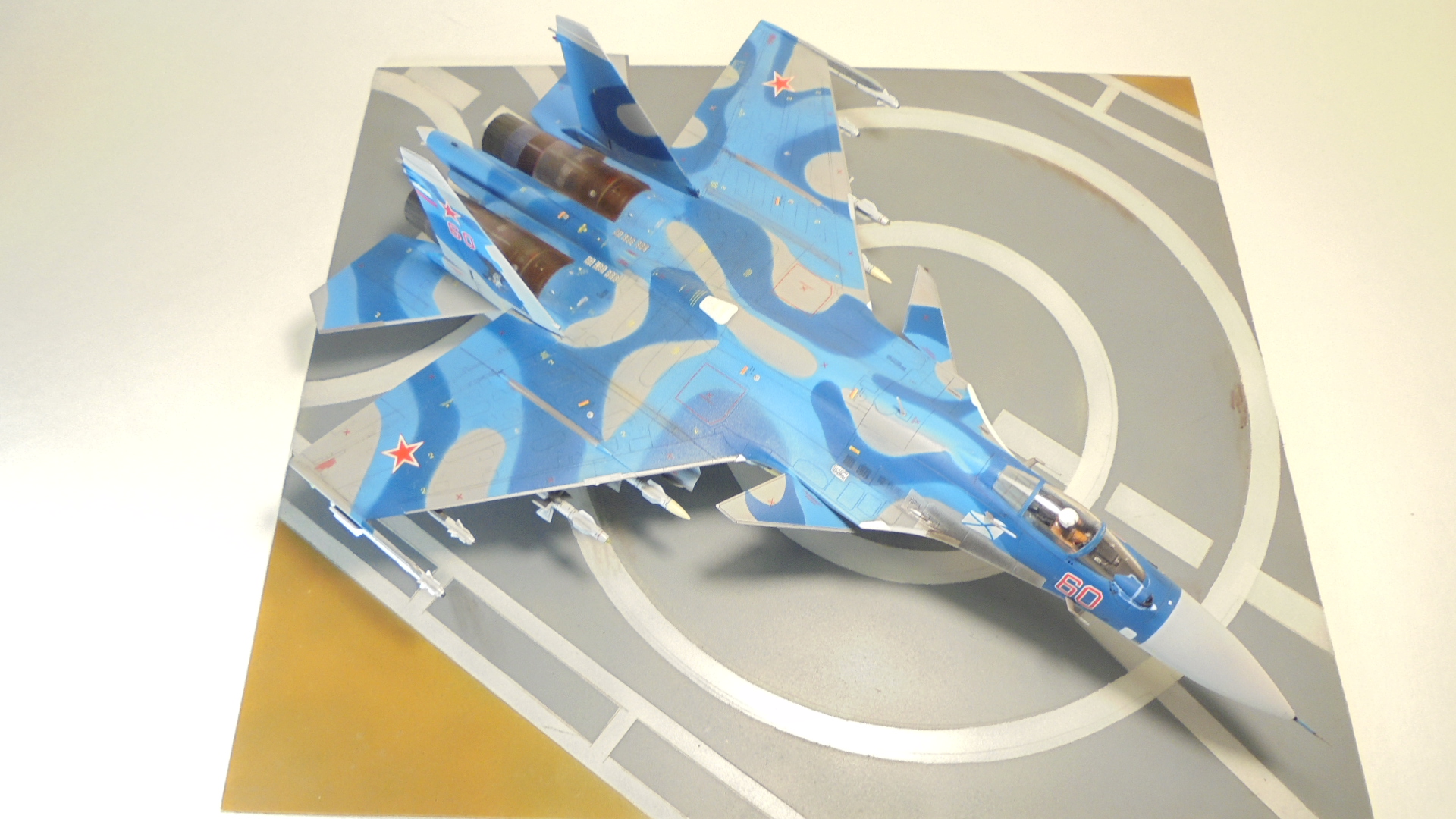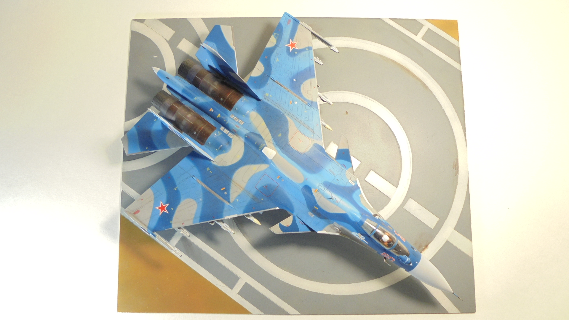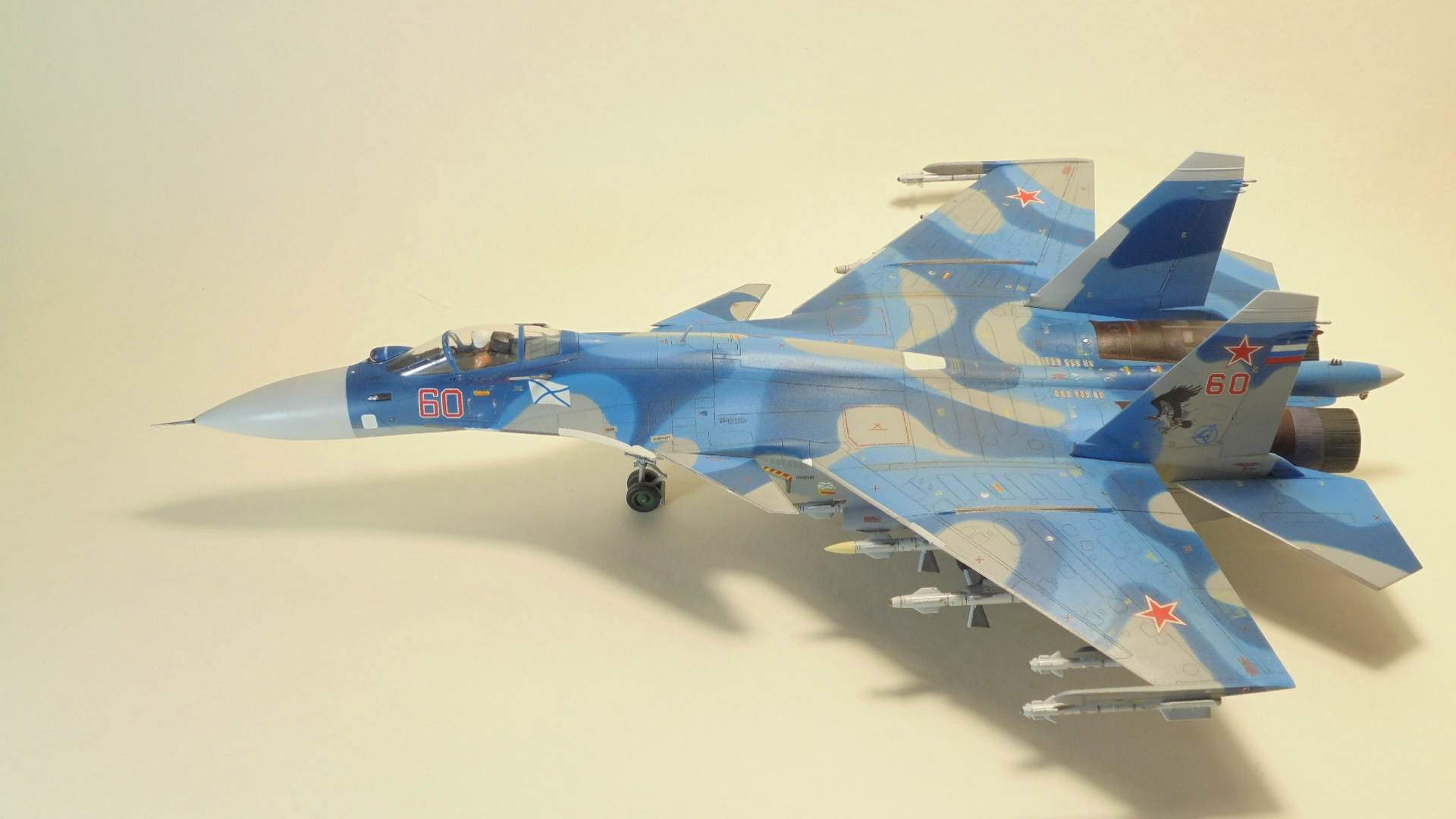 Доброго вечера.Представляю вашему вниманию модель Су-33 заводской шифр Т-10К; ранее известный как Су-27К. Собирал с минимальными доработками в кабине пилота подобие зеркал из фольги из плёнки ИЛС, проводка на стойках шасси,фары из страз и глаза у ракет Р-27ЭТ,пушка из мед ... иглы,хвостовой АНО .Красил нитро красками смешивал на глаз.КАМО красив и сложен рисовал дня два с помощью воскового пластилина и молярного скотча.Декаль попалась с брачком бортовые номера были смазаны пришлось искать другие и соображать борт 60. Смывка маслом.Пачкал совсем мало.Кусок Палубы из пластика делал очень давно для другой модели.Модель для своей цены конечно нормального качества со своими косяками в стыковке деталей,кое где не верная расшивка. Рассматривалась возможность подвески под самолёт ракеты Москит, что я и сделал ну и нарядил остальными ракетами как елку к Новому Году .Конечно такой подвес фантастика но на полке смотрится эффектно. Собрал как смог, конечно косяков хватает,результатом доволен. Приятного просмотра.