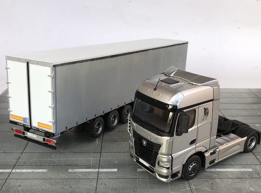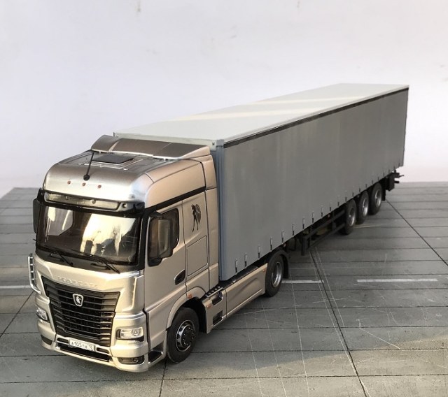 Еще одна новинка это AVD КАМАЗ-54901 с полуприцепом НЕФАЗ-93341! Модель Камаза имеет металлическую раму и кабину, остальное дано в пластике, покрышки резиновые , дворники даны фототравлением. Детализация данной модель отличная, подробно воспроизведена подвеска, имитация двигателя. Модель имеет функцию откидывания кабины. Рама прицепа и пол выполнены из металла и вес как говорится прицеп имеет). Сам тент дан пластиком, очень хорошо выполнена задняя подвеска полуприцепа. Деталей в наборе много, но если следовать подробной инструкции то все легко и быстро собирается. Стыковка отличная. Модель окрашена грунтом кудо, эмалью мотип. Приятного просмотра!