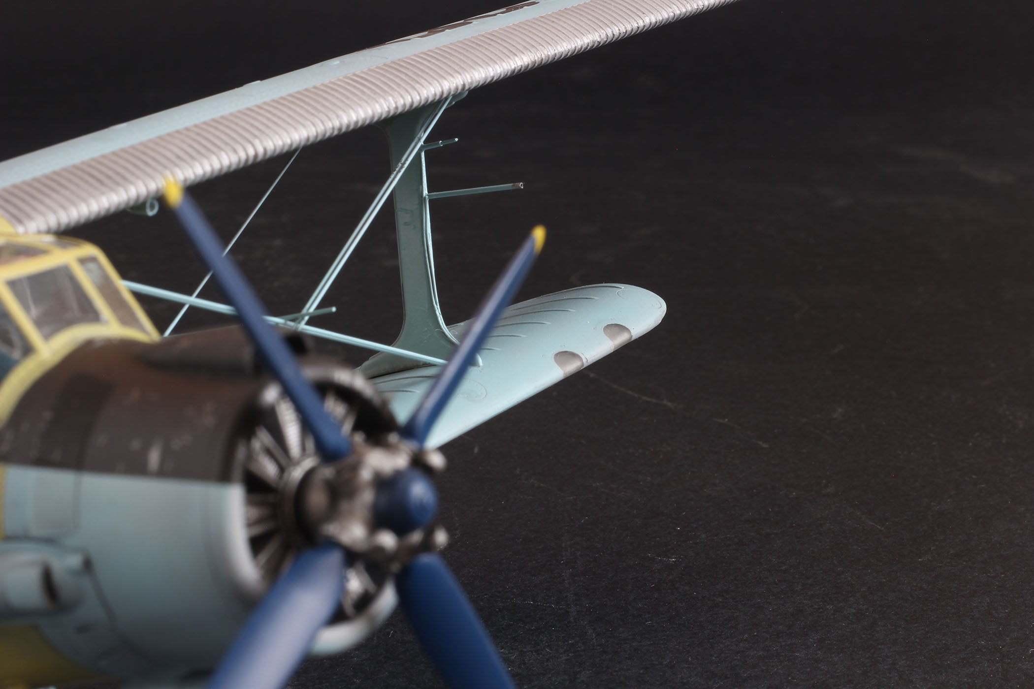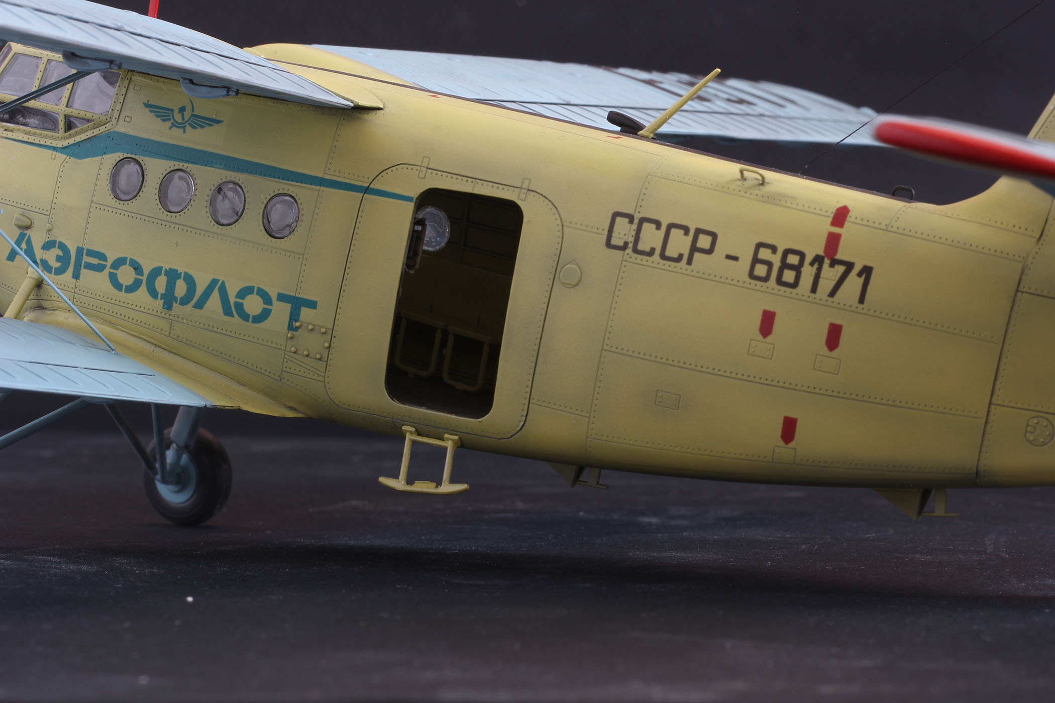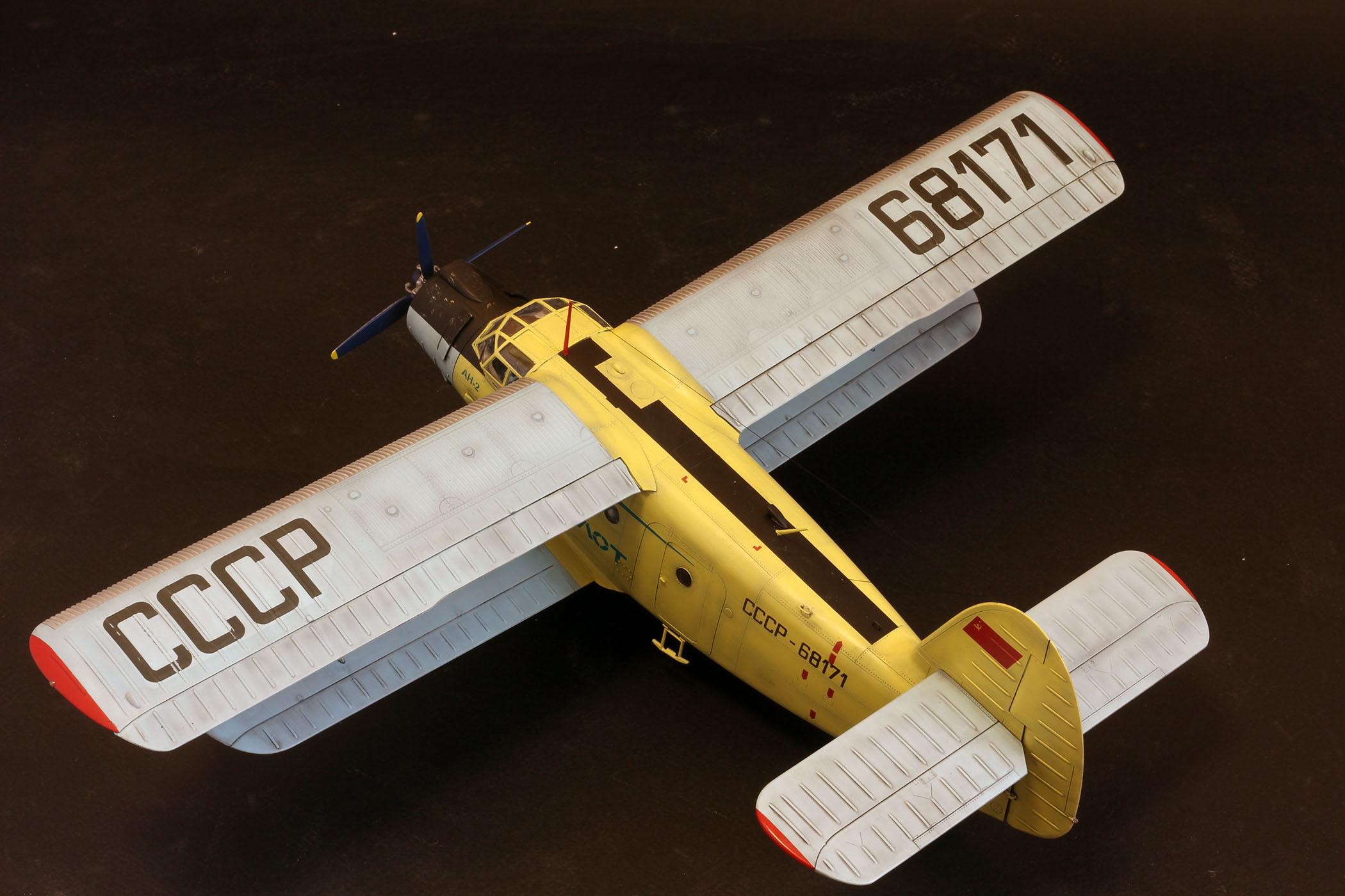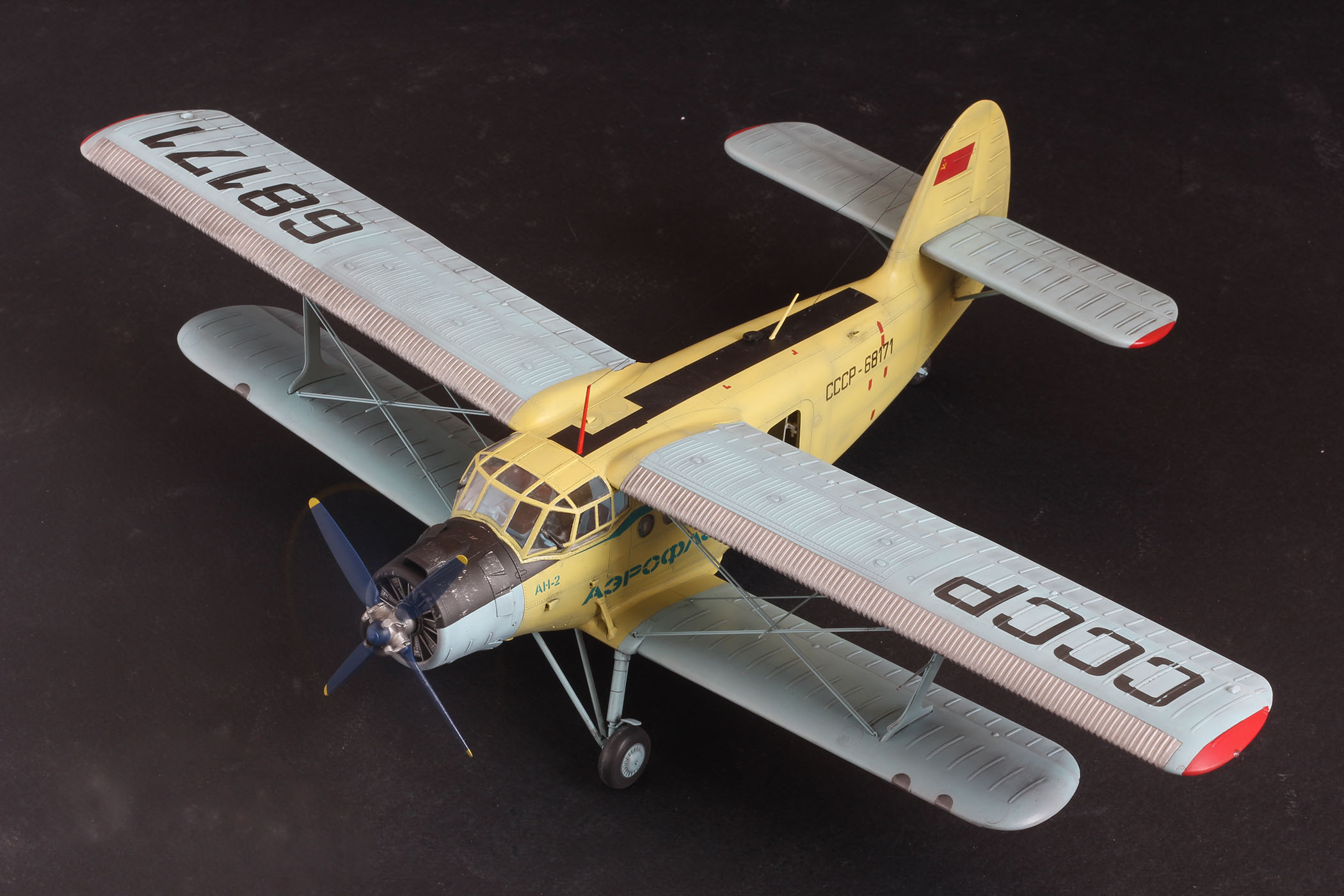 Ан2 от Хобби Босс из коробки, добавил лампочки и моторчик, в мат часть не лез. К конкретному прототипу привязки нет, некий собирательный образ. Так что гот ов к табуреткам.