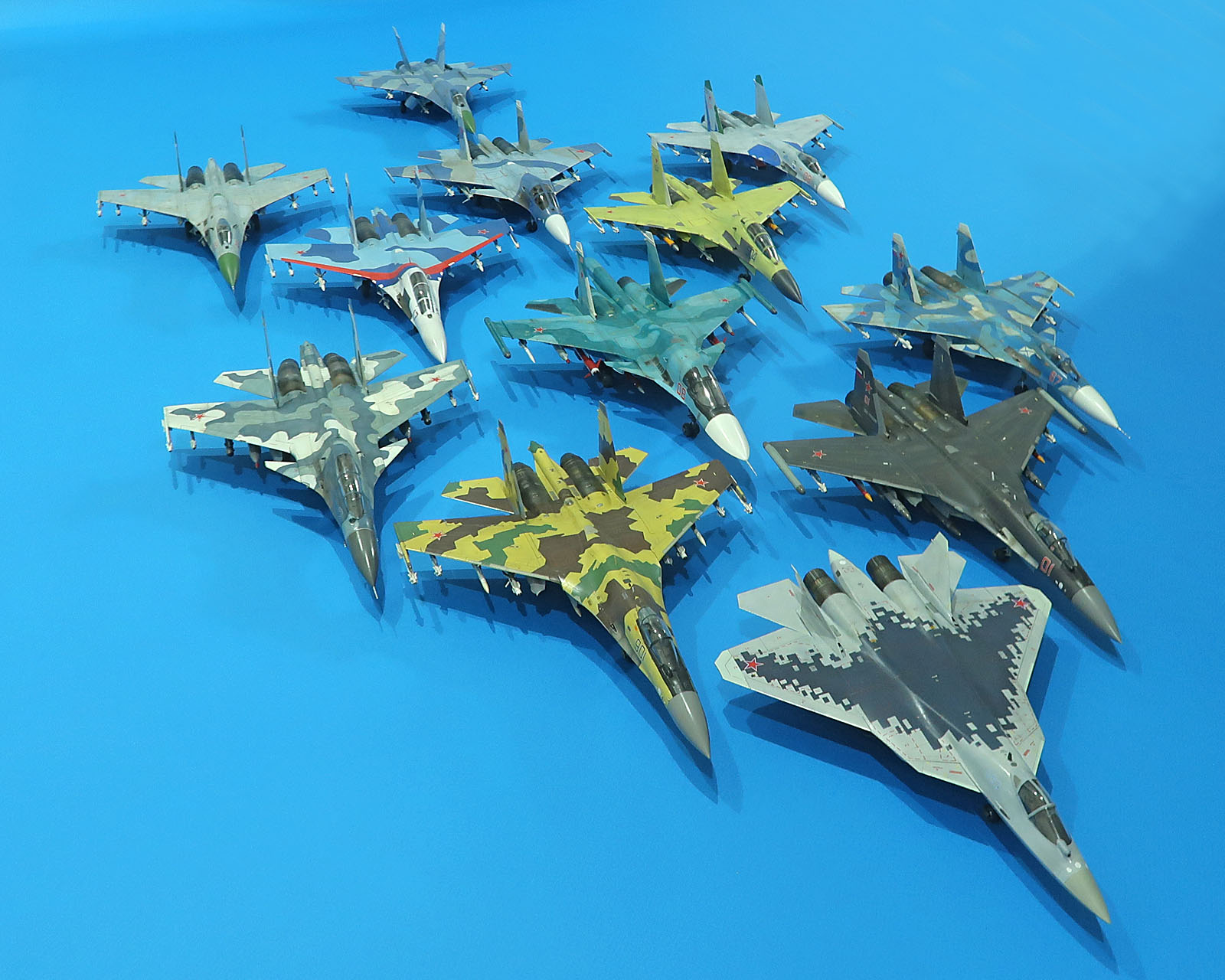 04. Су-35С - из набора Hasegawa (сопла и хибины - амиго, травло DreamModel)05. Су-30МКИ - из набора звезды Су-30СМ. (сопла армы однодетальные, кресла tempmodels)