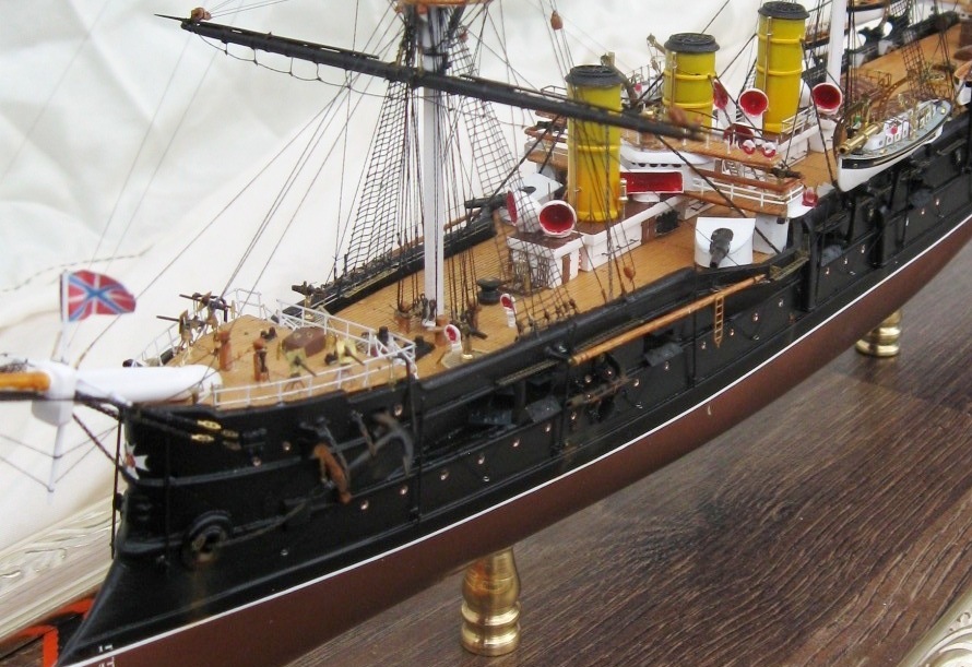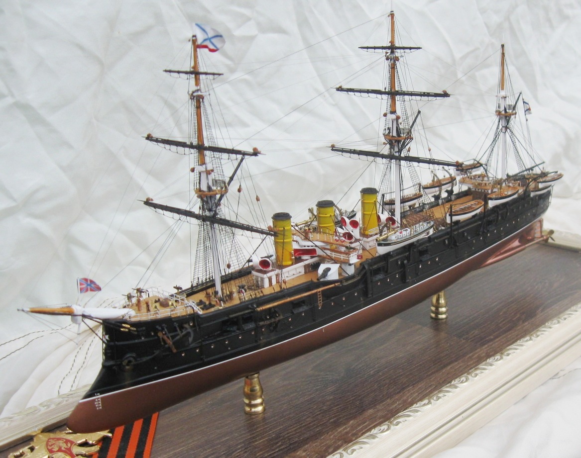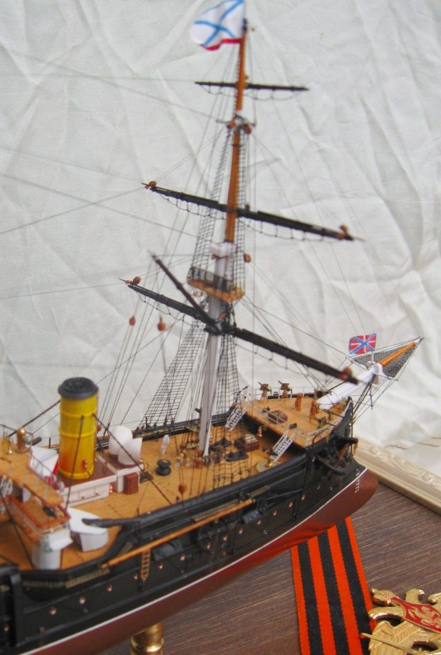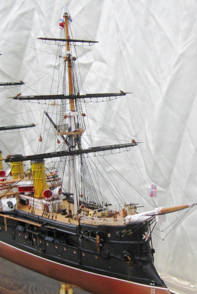 Константин, вы меня немножко неправильно поняли относительно флага контр-адмирала. Судя по элементам корпуса, я прекрасно определил примерное время жизни прототипа. Ближайшее к заявленному периоду время, когда "ПА" мог нести флаг контр-адмирала, это 21 августа-27 сентября 1893. (Кронштадт-Гельсингер-Копенгаген-Кадис). Уже 28 сентября Ф.К. Авелан перенёс командование на "Император Николай Первый". Но, если вы хотели показать более поздний и наиболее значительный исторический период, то уже в Чифу в 1895 корабль выглядел иначе.