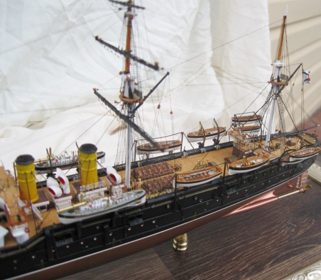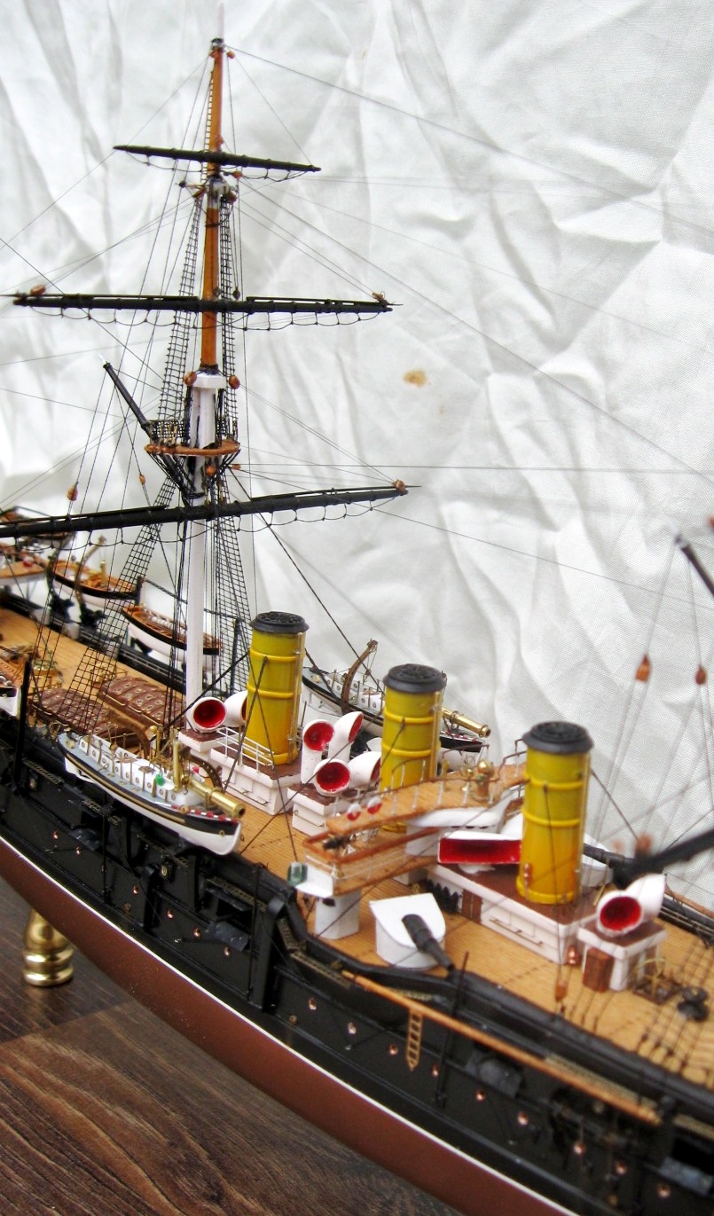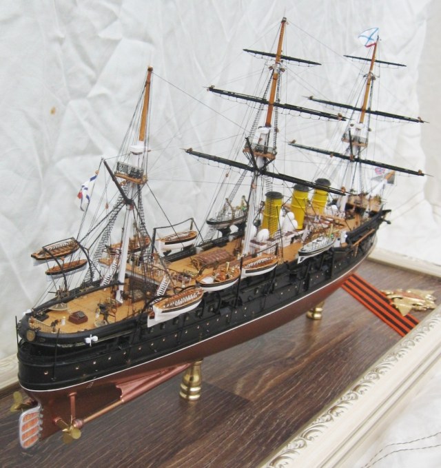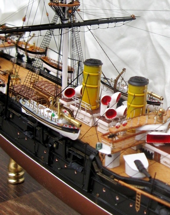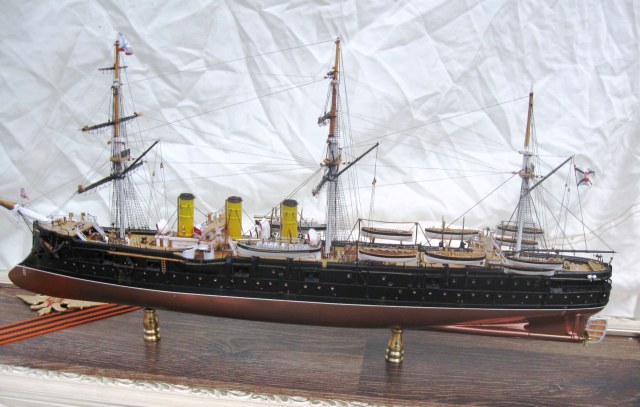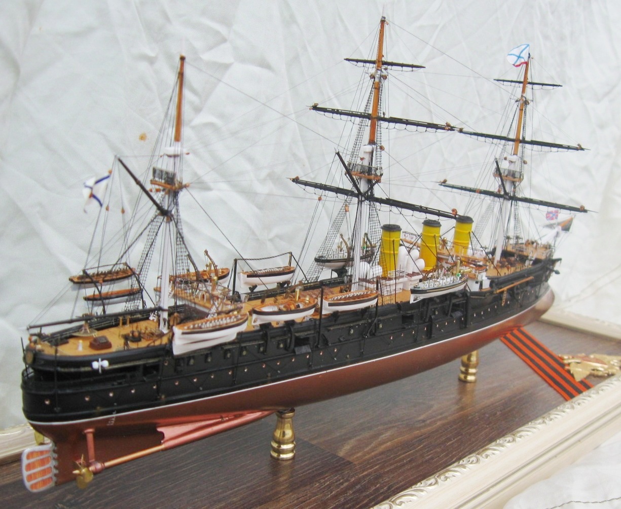 Константин, вы меня немножко неправильно поняли относительно флага контр-адмирала. Судя по элементам корпуса, я прекрасно определил примерное время жизни прототипа. Ближайшее к заявленному периоду время, когда "ПА" мог нести флаг контр-адмирала, это 21 августа-27 сентября 1893. (Кронштадт-Гельсингер-Копенгаген-Кадис). Уже 28 сентября Ф.К. Авелан перенёс командование на "Император Николай Первый". Но, если вы хотели показать более поздний и наиболее значительный исторический период, то уже в Чифу в 1895 корабль выглядел иначе.