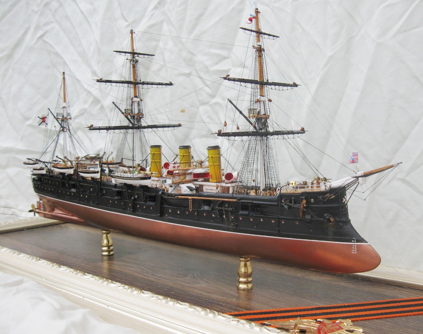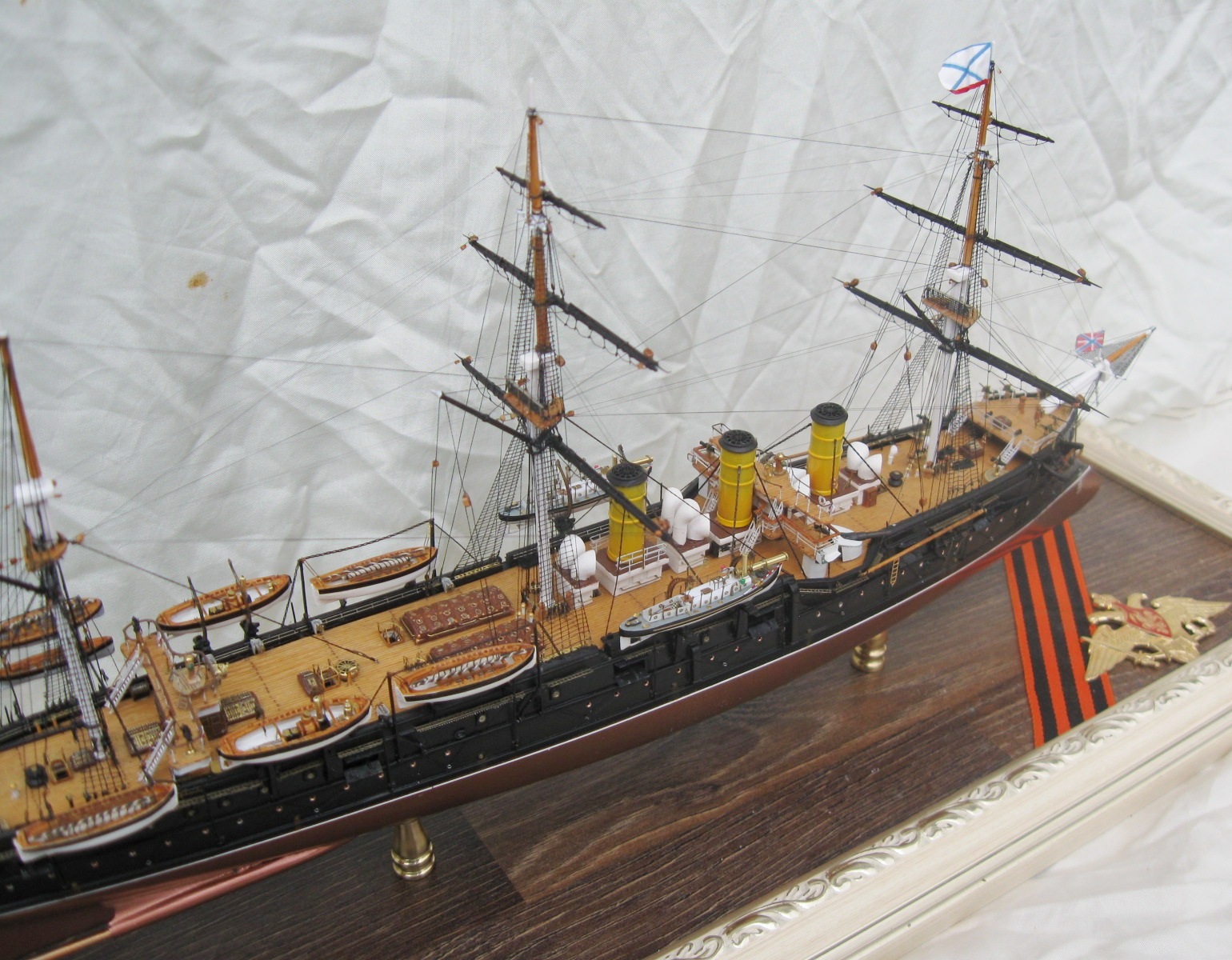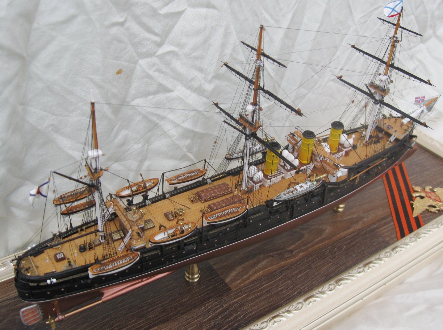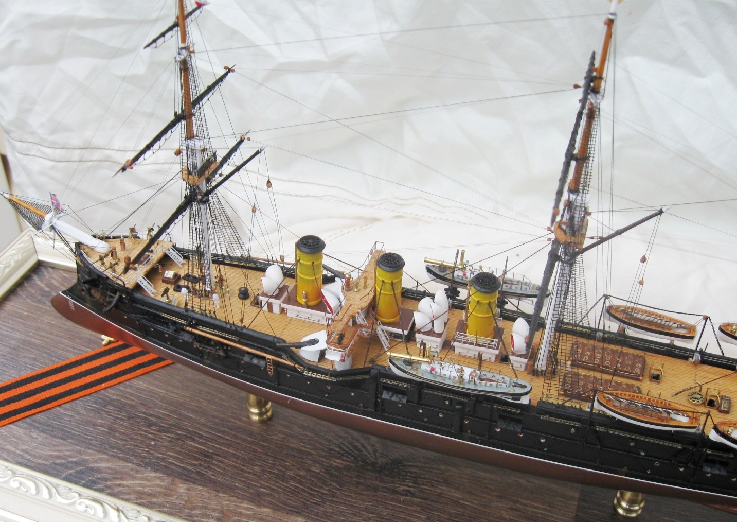 Недурственно,очень недурственно. Учитывая самодельность в таком масштабе- мои поздравления. Мне не хватило макросъемок. Плавсредства на высоте. Вот не удалось хорошо разглядеть такелаж, показалось,что есть небольшие косячки,но может просто показалось. Не увидел. Белый шар.ЗБЗ.