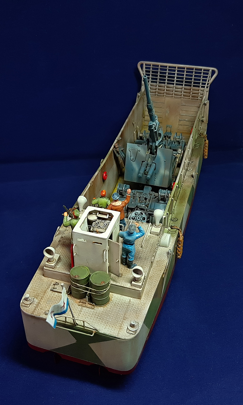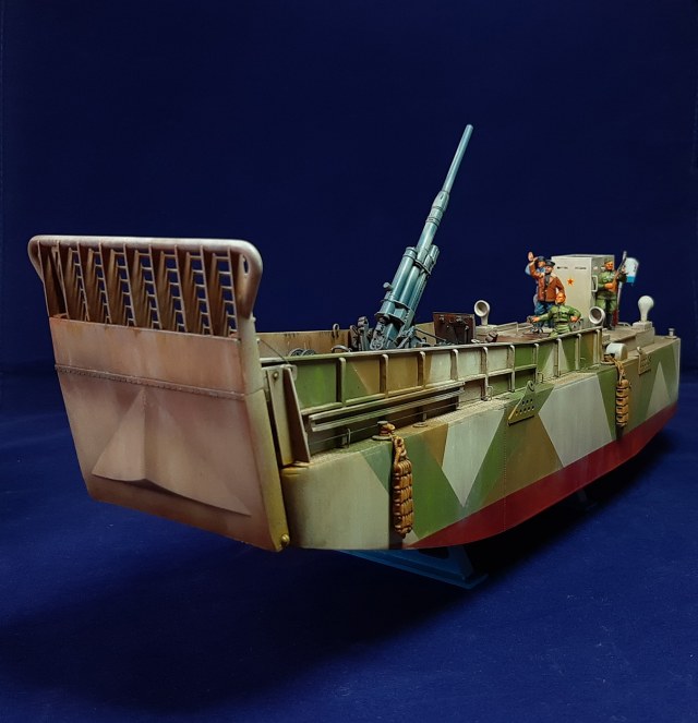 Делать серо- красную лодочку откровенно скучно . Поэтому был добавлен экипаж, солдаты сопровождения и немецкая знаменитая 88-мм Flak 18/36/37.