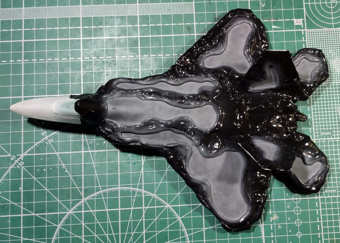 Опыта у меня тут мало, поэтому решил в качестве прототипа выбрать что-нибудь с простой геометрией, что не потребует много времени при сборке. Вот например F-22 от хобика вполне подойдет, подумал я. И в очередной раз сильно ошибся )))